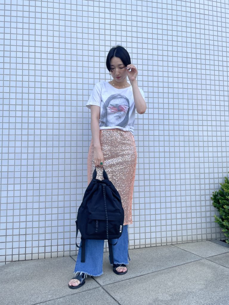 ナップサックですが、想像していたよりも荷物が入ります。ブラックを購入しましたが、コーデを選ばず合わせやすく◎