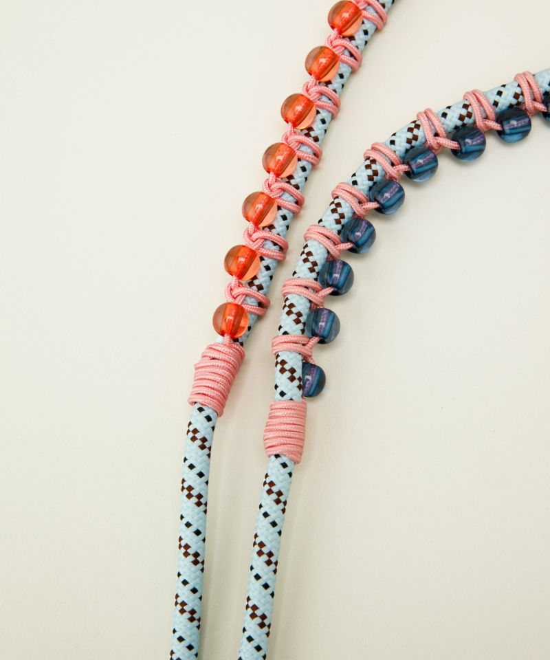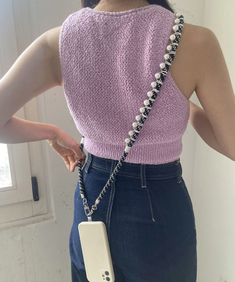 太いコードにビーズを編み付けた素材の組み合わせが楽しいスマホショルダー。 涼し気な透け感のある大きなビーズは夏のお出かけのコーディネートのアクセントにおすすめです。 スマホ本体とカバーの間に差し込んで使えるパーツ付きのため、お手持ちのカバーにすぐご使用いただけます。