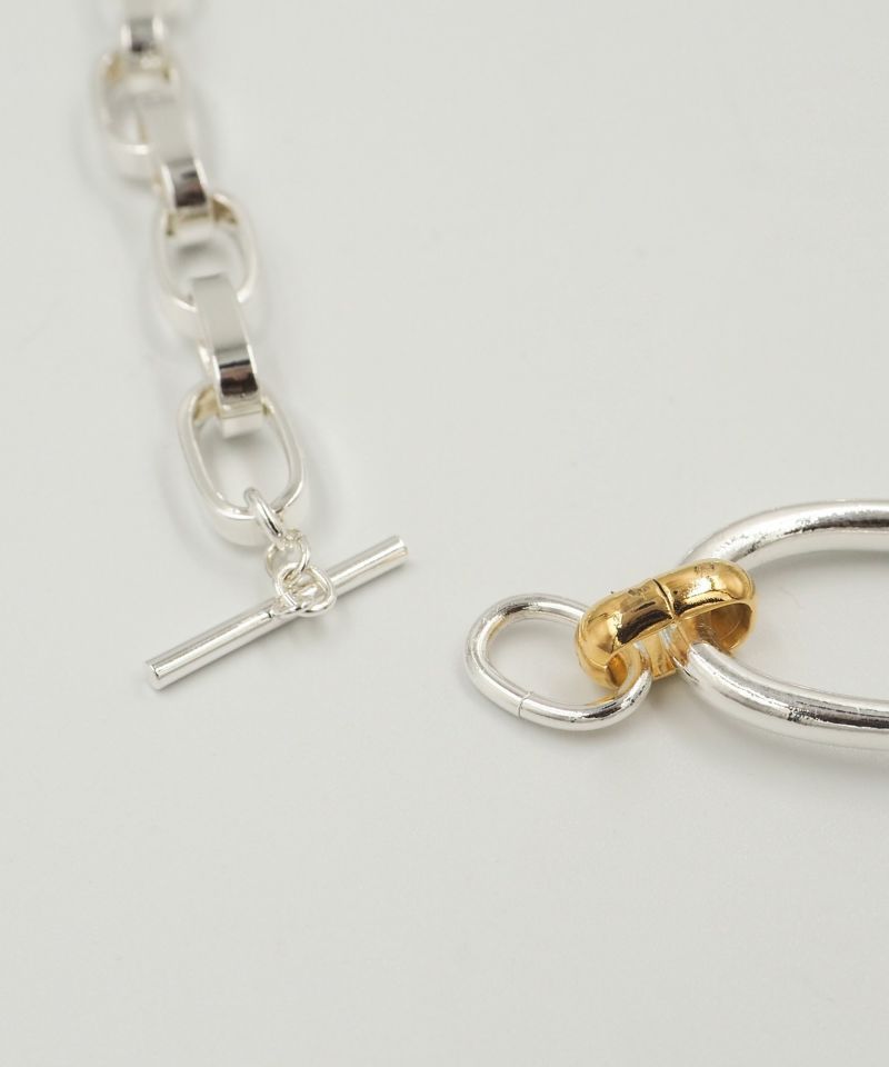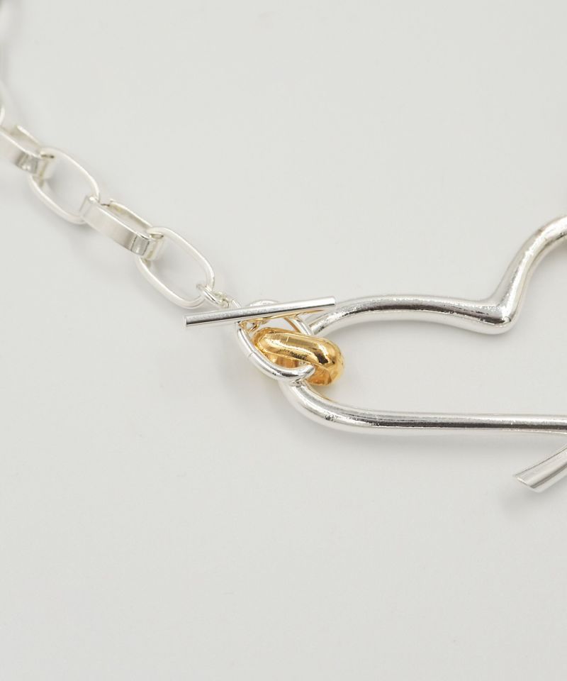 大きなハートモチーフに太めのチェーンでインパクトのあるデザインに仕上げたチョーカー。 さまざまなコーディネートに合わせやすく、シンプルなスタイリングの際にもアクセントになるアイテム。 単品ではもちろん、ロングネックレスと組み合わせてお使い頂くのもおすすめ。