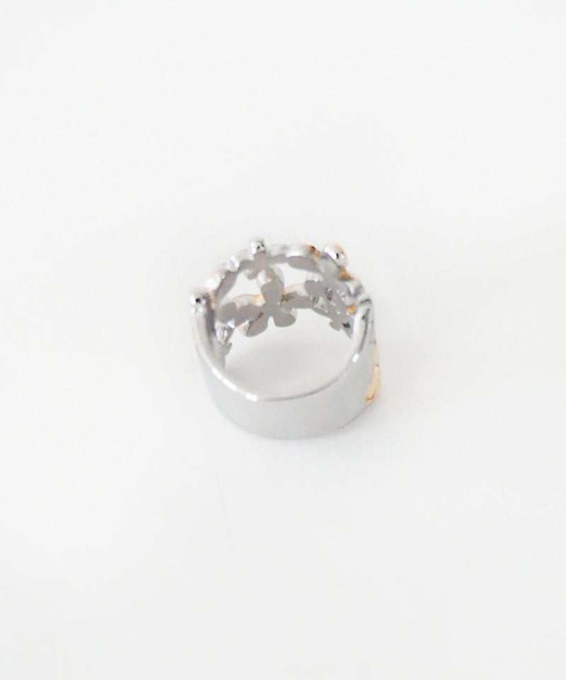 フラワーモチーフを繋いだ存在感のあるデザインのリング。 メタルが醸し出す大人な雰囲気と、小振りなお花モチーフの可愛らしさのコンビネーション○ ミックスカラーが華やかで、シンプルコーデのアクセントになってくれます。