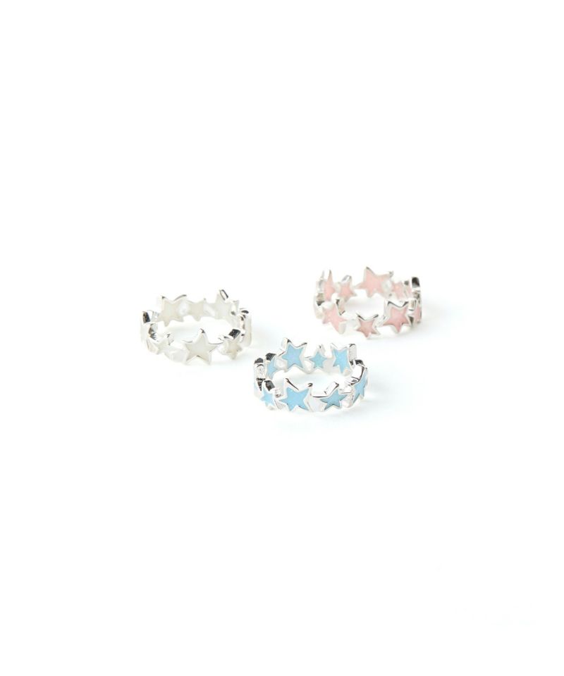 手書きのようなスターモチーフが配置された愛らしいリング。 大小のモチーフがランダムに配置されており、手元に躍動感をプラスするデザイン。 他のアクセサリーとコーディネイトもしやすい程よいボリューム感です。 サイズ...13号相当