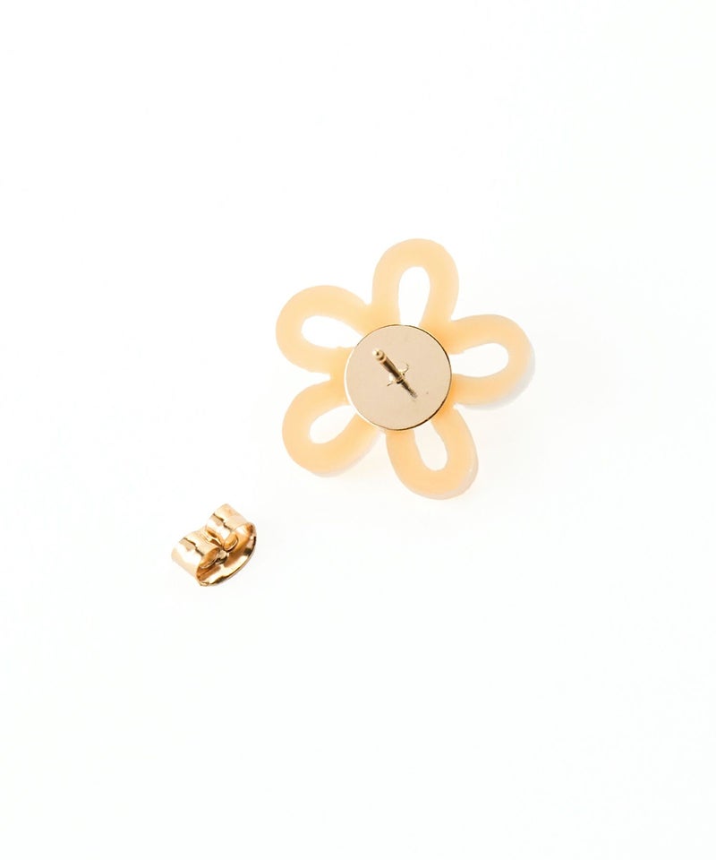 ぷっくり感と透け感がキュートなクリア素材のフラワーピアス。 ビビッドなセンターカラーがアクセントになって、耳元をパッと明るく彩ります。 軽量でつけ心地もよく、デイリーからフェスやイベントまで幅広く使える万能アイテム。 パステル×ビビッドの配色がポイントです。