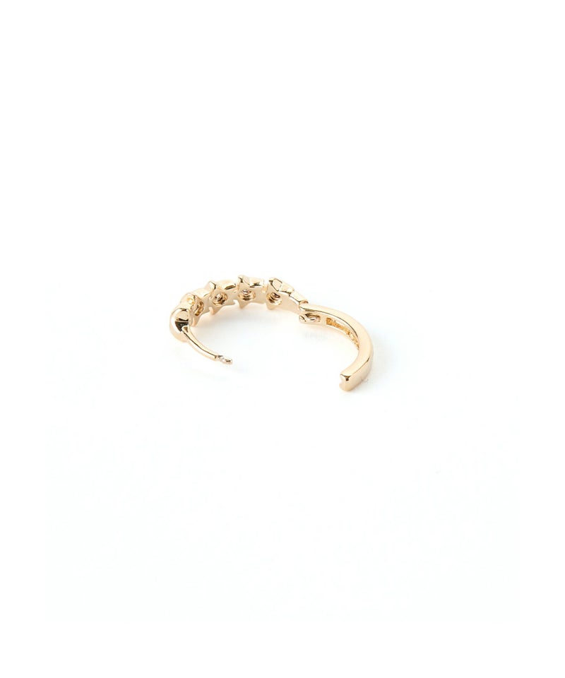 スターの中央部分に繊細に輝くビジューがポイントのピアス。 キャッチ不要のワンタッチで着けられるのが便利で使いやすい。 他のアクセサリーとコーディネイトもしやすい程よいボリューム感です。