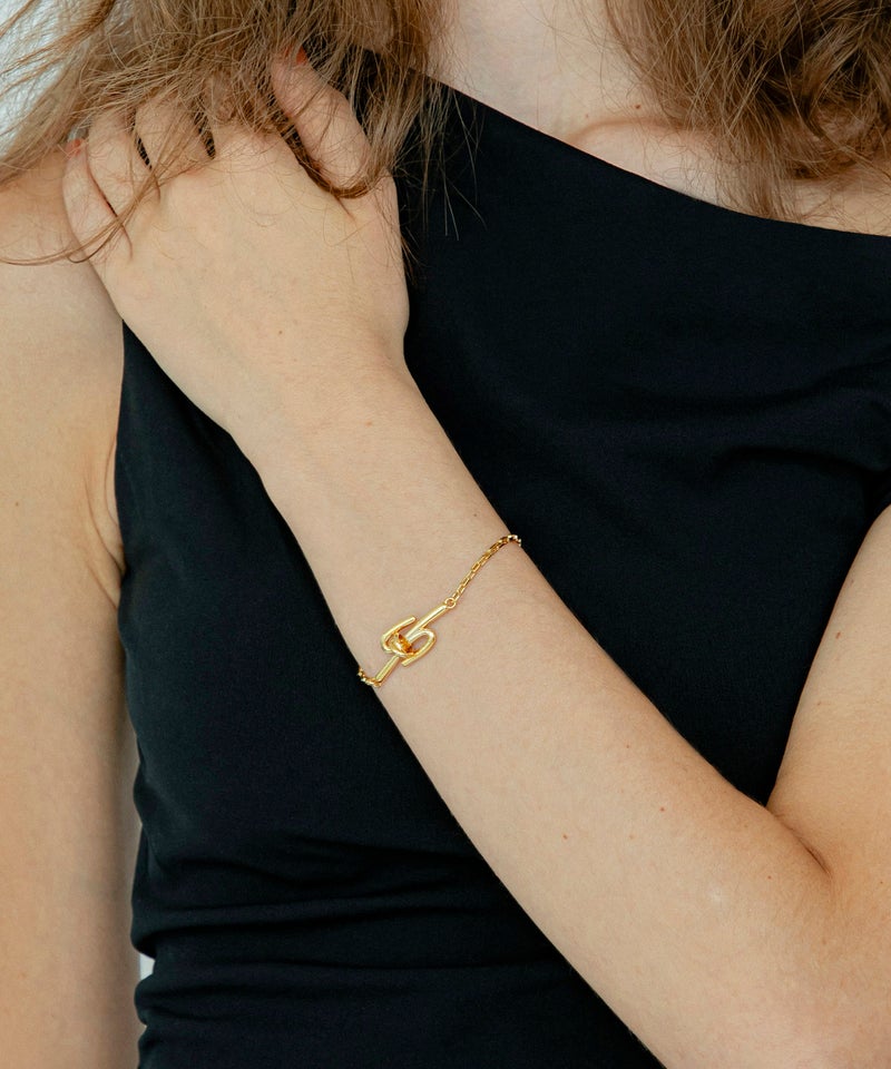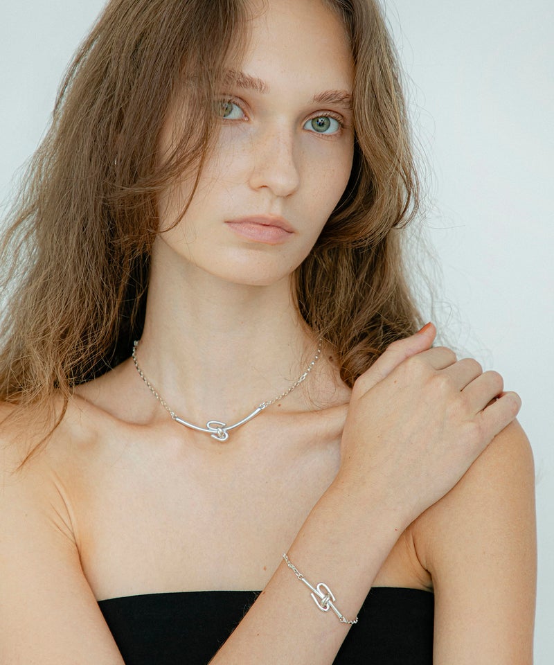 「絆」をイメージしたモチーフのブレスレット。 中央に重ねたリングパーツが揺れる、繊細なデザインです。 オリジナルパーツを使用したマンテル部分もアクセントに。 程よい太さのチェーンで、デイリーに使いやすいデザインです。