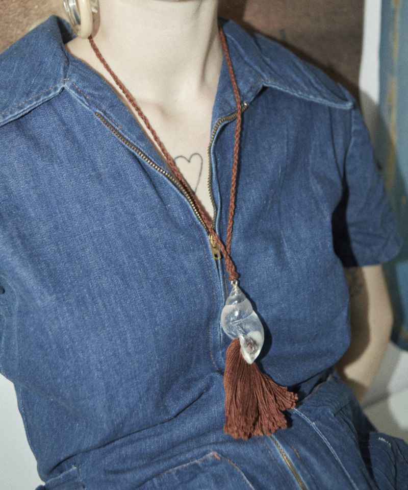 巻貝を模したチャームから、まるで海の音が聞こえそうなネックレス。