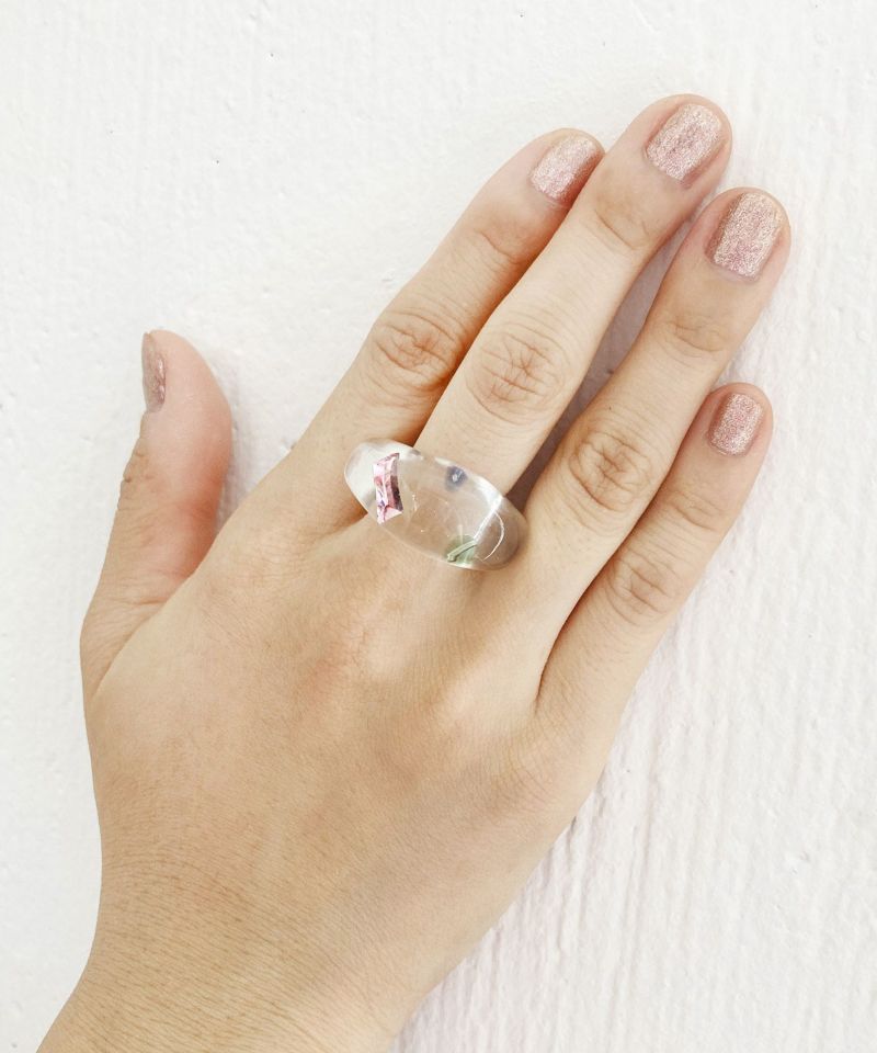 綺麗なクリアベースが、目を惹くリング。 春夏は涼しげに秋冬はアクセントになるアイテムです。 複数カラーで付けるとよりかわいいです◎ 同シリーズのチョーカーはこちら>>