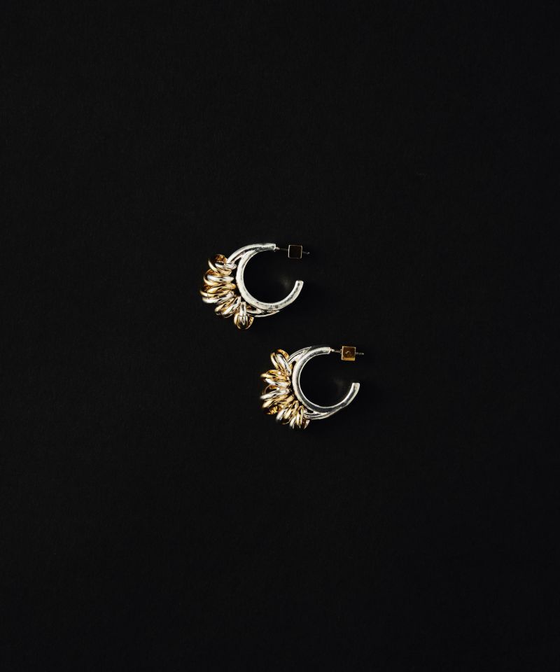 立体的に斜めにCoilを配置したVolume Coilシリーズ。 ボリューム、揺れ感ともに大胆なデザインが特徴。 Coil Aroundシリーズより、さらに存在感のあるアクセをお探しの方に是非。