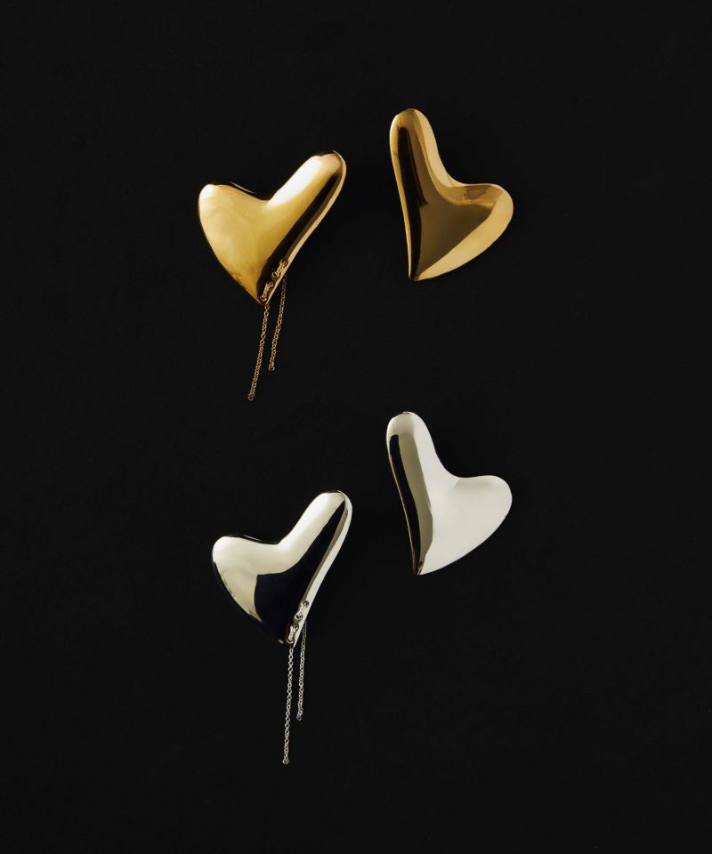 ニュアンスのあるハート型のプレートパーツに、片側のみステッチのようなチェーンをあしらったデザインのイヤリングです。 モードな雰囲気でお使い頂けるハートモチーフで、シンプルスタイリングのポイントになります。 ピアスタイプはこちら>>