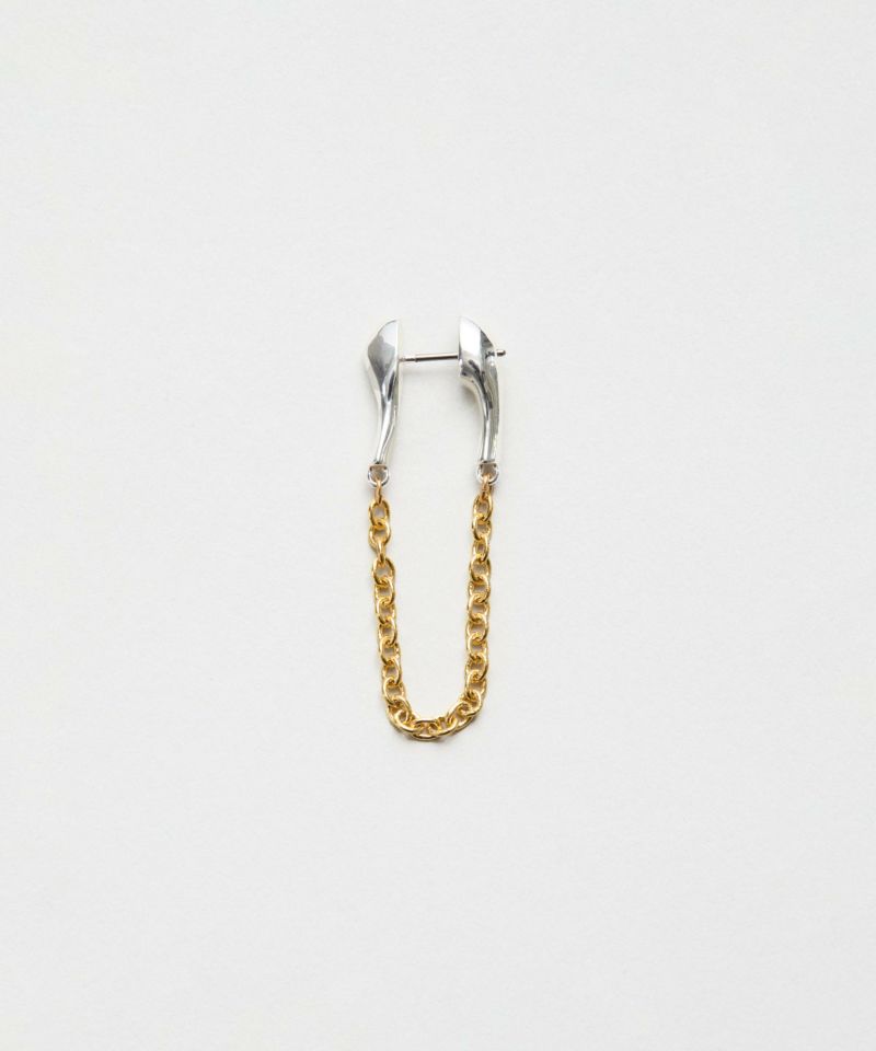 シンプルなデザインのチェーンピアス。 ニュアンスのあるシルエットのトップとキャッチが、耳元に抜け感をプラスします。 Ornamentシリーズのネックレスと合わせて着けるのもおすすめ。 キャッチ部分まで繋がっているので、紛失しにくいのも嬉しいポイント。 Ornamentシリーズはこちら>>
