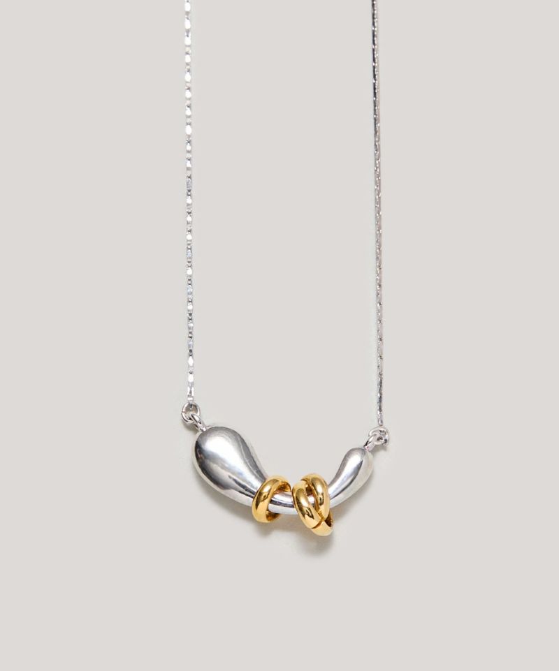 ニュアンスある形状にリングパーツをあしらった、Flow coilシリーズのネックレス。