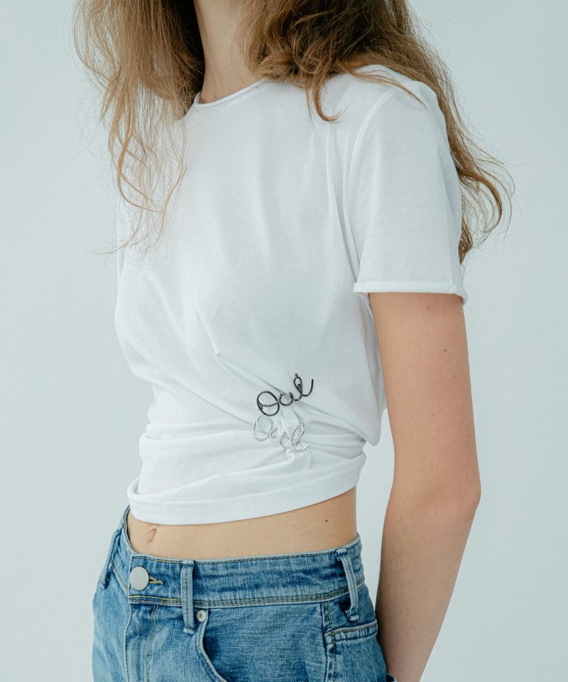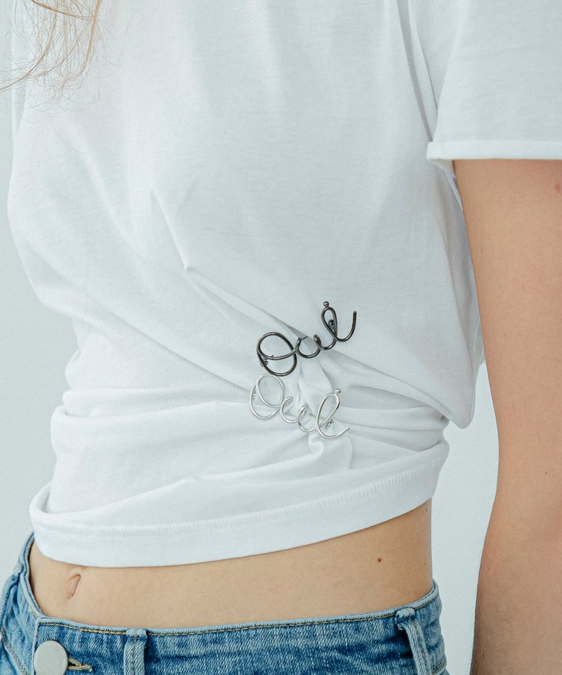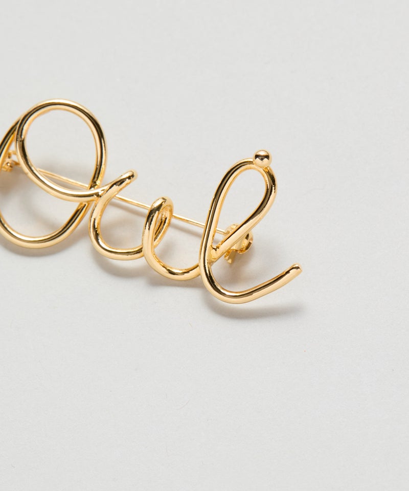 “oui”のレタリングブローチ。 筆記体にしていることで、ニュアンスとクラフト感のある仕上がりになっています。 シャツやバッグのアクセントにぴったり。同シリーズの重ね付けもおすすめです。