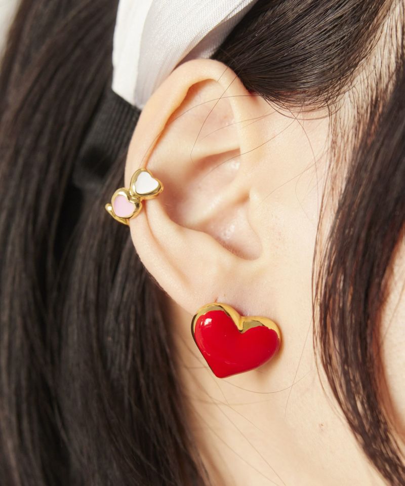 ぷっくりとしたハートモチーフが可愛いピアス。 シンプルなデザインで取り入れやすく、さっと付けるだけで顔周りが華やかな印象に。 レッドとブラックの2色をご用意。