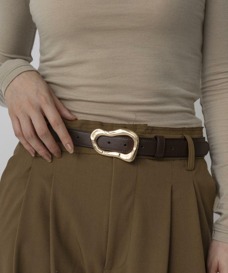 <POIRE -ポワール- >洋梨(POIRE)を模したバックルが目を惹くアイテム。なめらかな表面感の羊調のフェイクレザーが特徴です。ベーシックなカラー展開でデイリーにお使いいただけます。シンプルなコーディネートに合わせてアクセントとしてお使いいただくのもおすすめです。