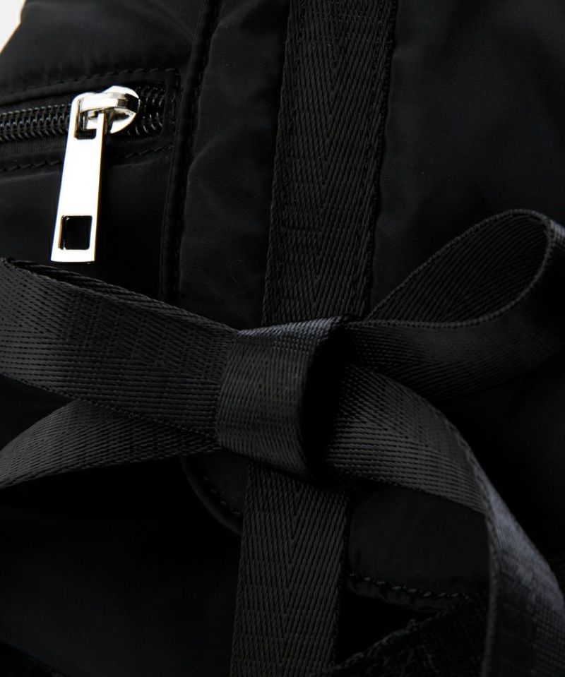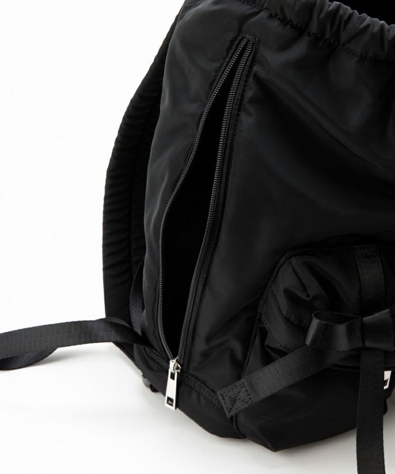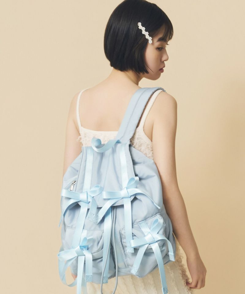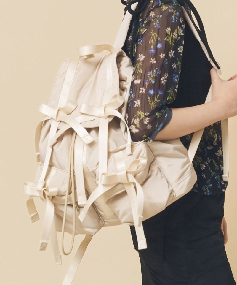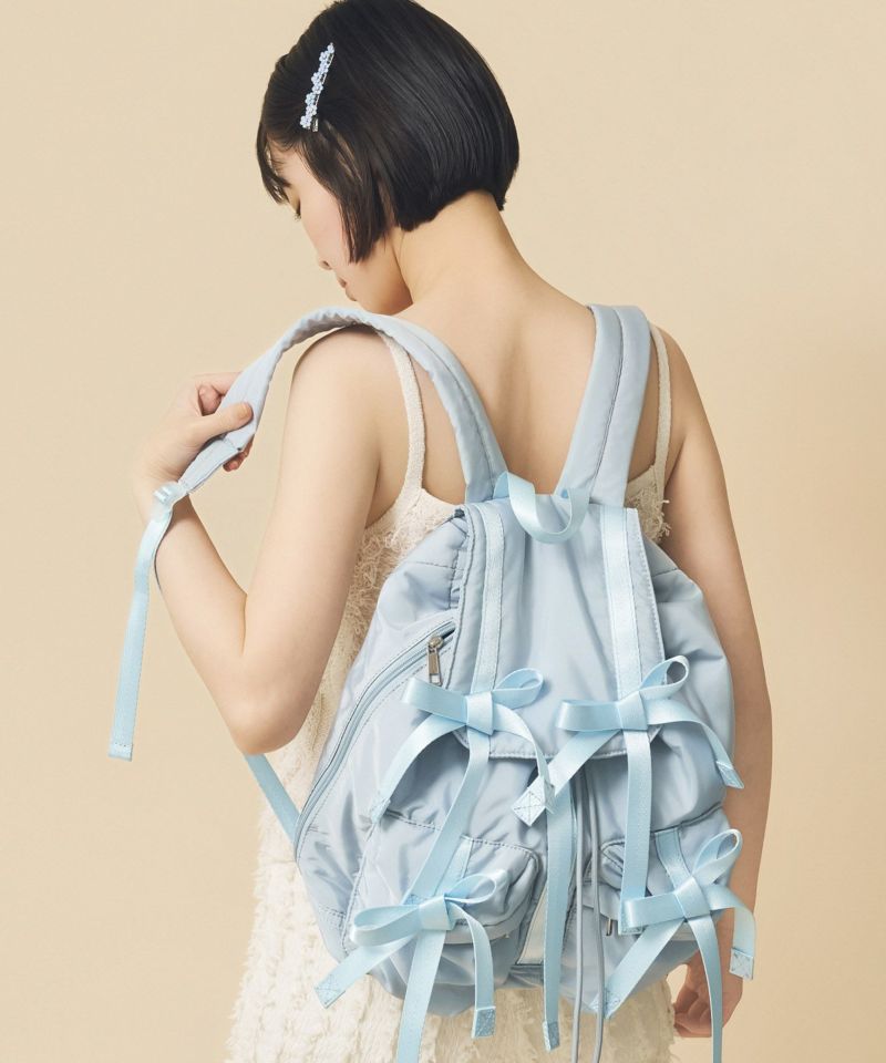 トレンドである複数のリボンがポイントのバッグパック。