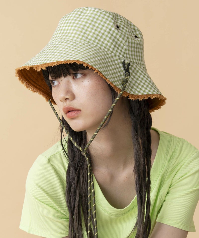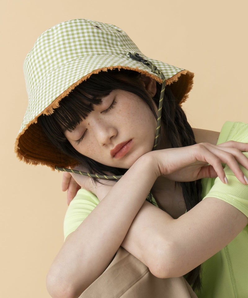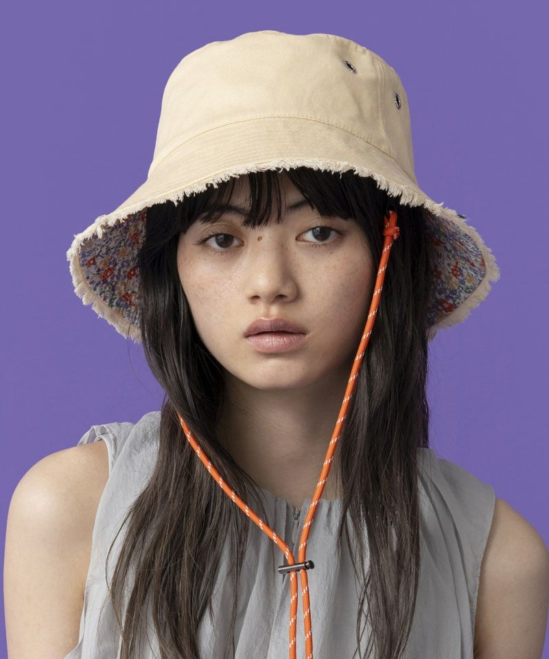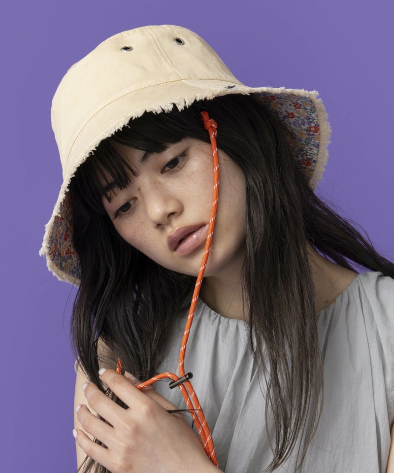 毎年人気のリバーシブルで楽しめるバケットハット。 裏側の柄生地がかぶった際にちらりと見えるところがポイントです。 使いやすいサイズ感もこだわり、畳んでバッグの中へ入れて持ち運びしやすい素材です。