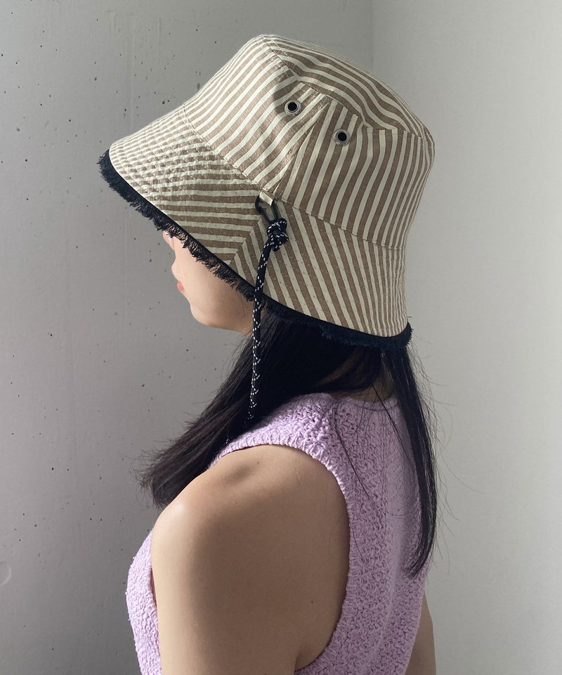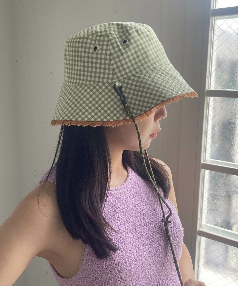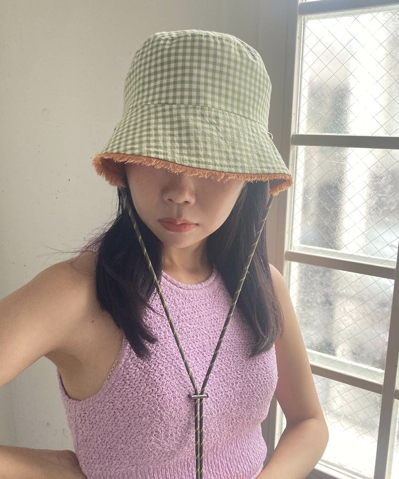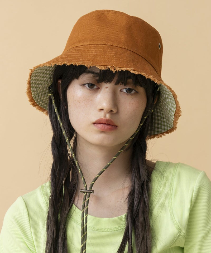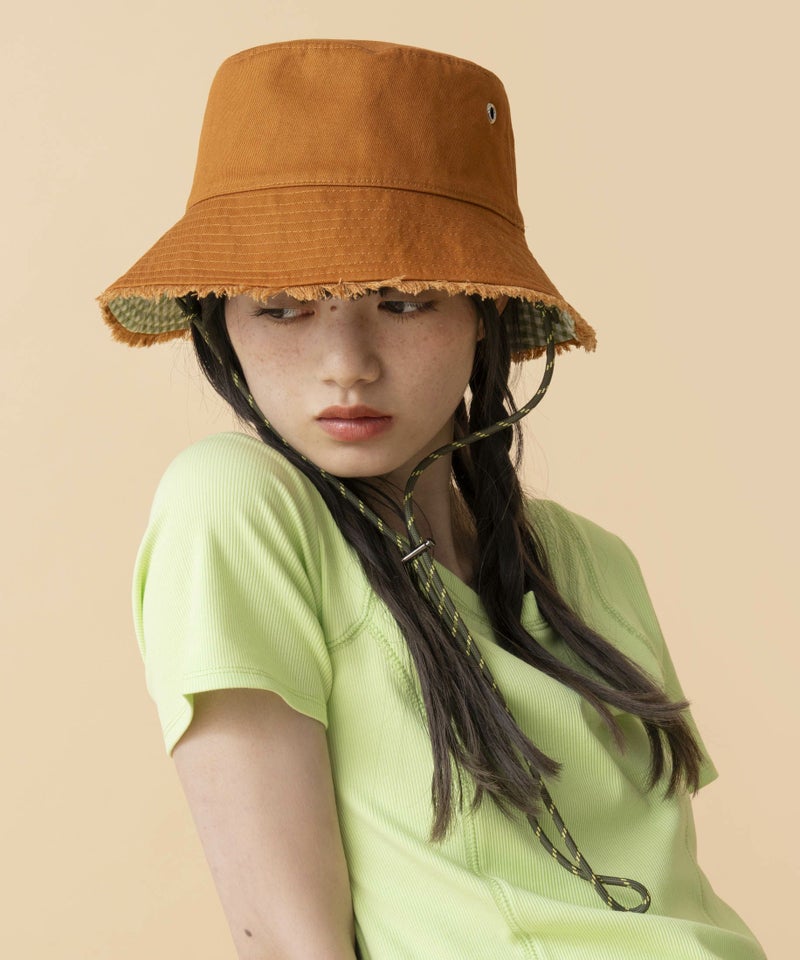 毎年人気のリバーシブルで楽しめるバケットハット。 裏側の柄生地がかぶった際にちらりと見えるところがポイントです。 使いやすいサイズ感もこだわり、畳んでバッグの中へ入れて持ち運びしやすい素材です。