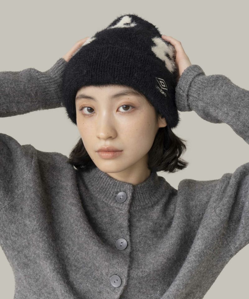 UMBROらしいスポーティー感のあるラインで2色、キャセリーニらしいお花のジャガードで2色、計4色のアンゴラ風ワッチを展開。