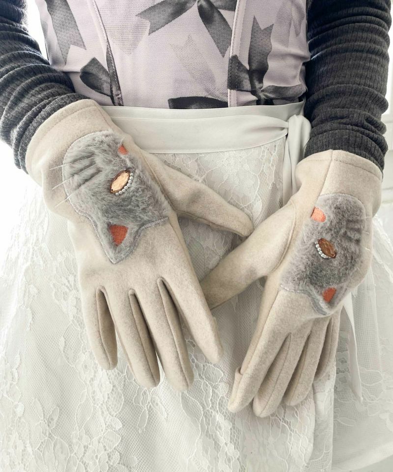 フェイクファーで作られた猫の顔が主役のグローブです。