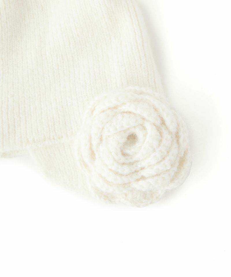 両耳にお花の装飾がついた秋冬らしいニット帽。