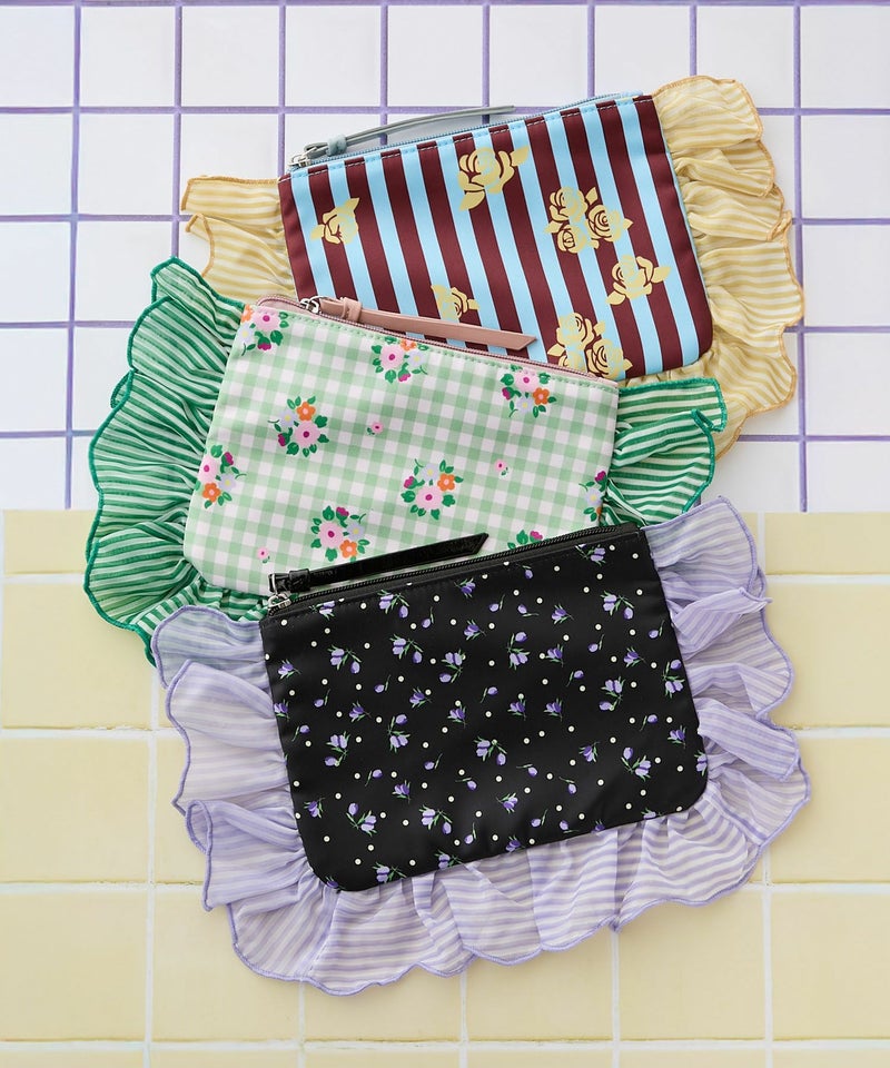 3種類のお花の柄をプリントしたポーチ。