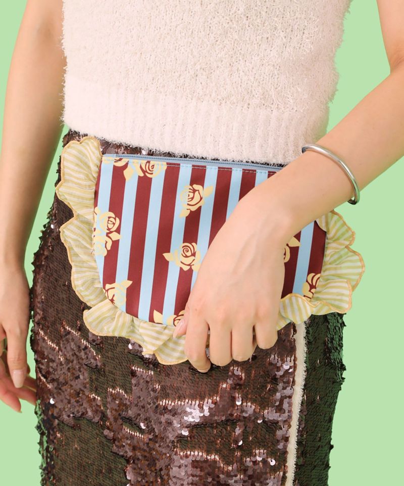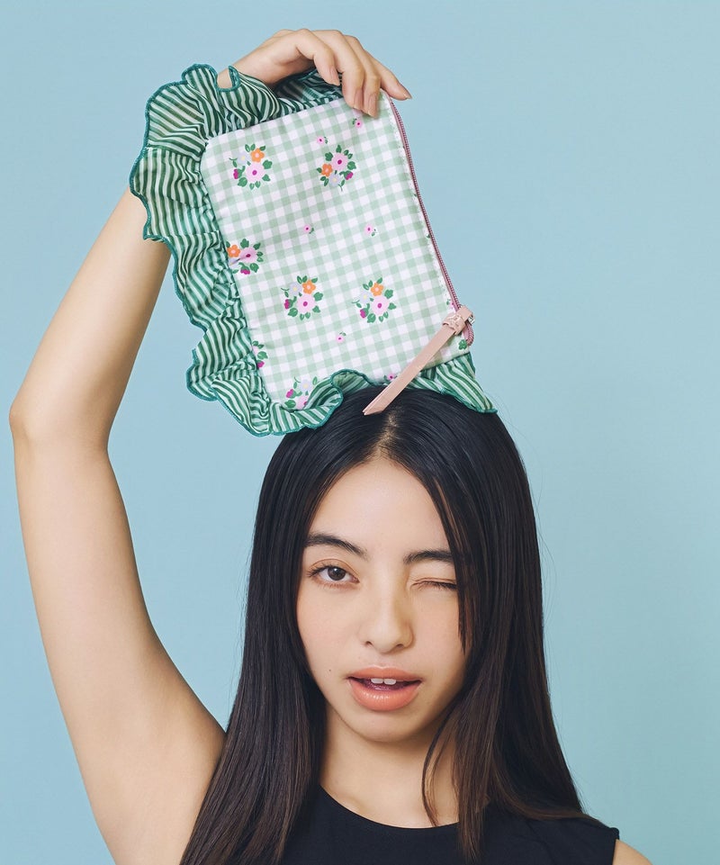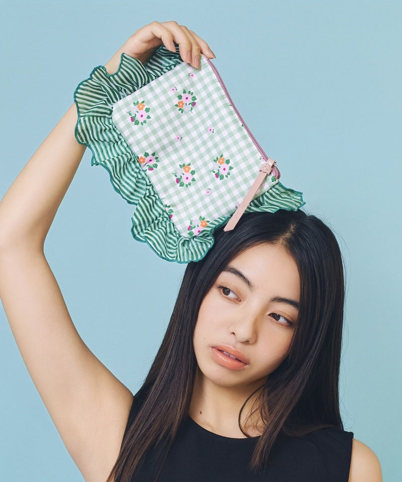 フリル部分にもボーダー柄をプリントし、柄と柄と組み合わせた表情豊かな花柄に仕上げました。