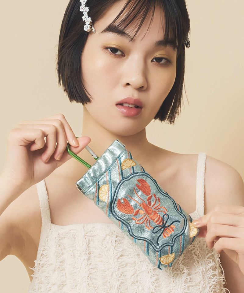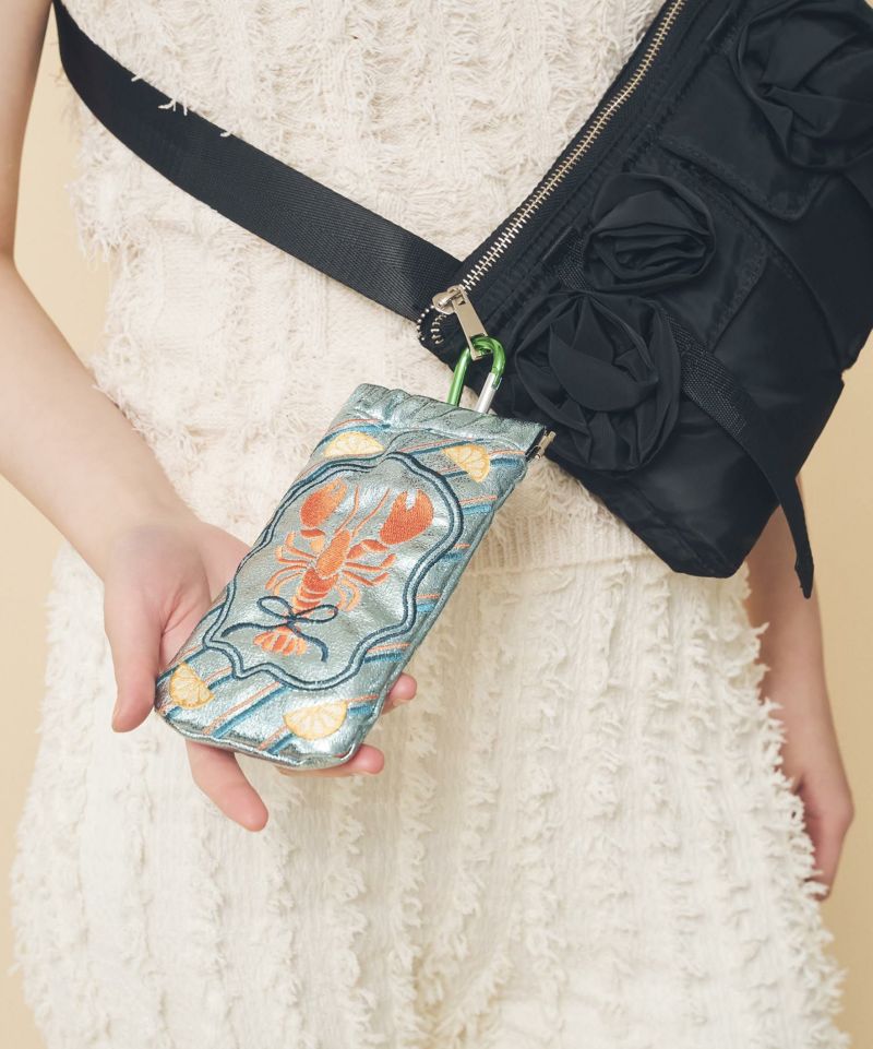 Casseliniらしい刺繍を施したサングラスケースは、カラビナでバッグに取り付けて、チャームのように使用しても◎