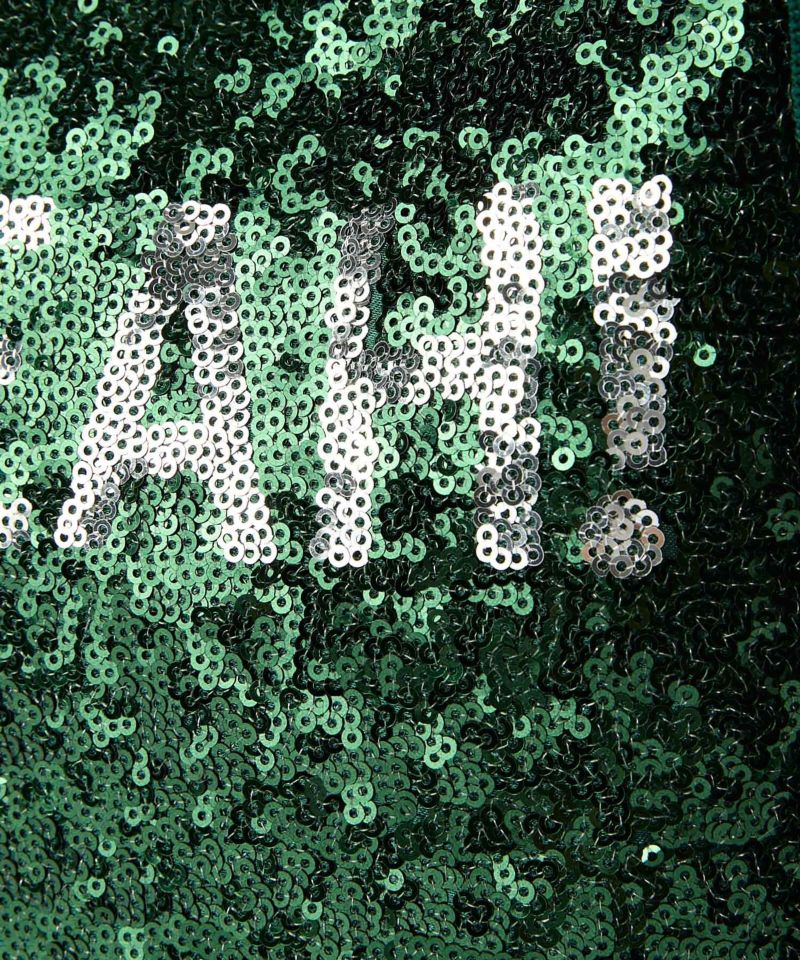 トレンドのスパンコール素材にロゴ刺繍をプラスしたキャッチーなアイテム。