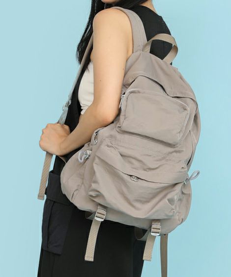 立体的なポケットが印象的なリュック。