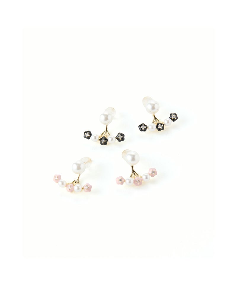 パールとモチーフが華やかに配置されたデザインピアス。 耳元の後ろでモチーフが立体的に広がる個性的なシルエット。 小ぶりなサイズ感ながら、華やかで女性らしい雰囲気を演出してくれます。 日常使いはもちろん、ちょっとしたオケージョンシーンにもおすすめです。