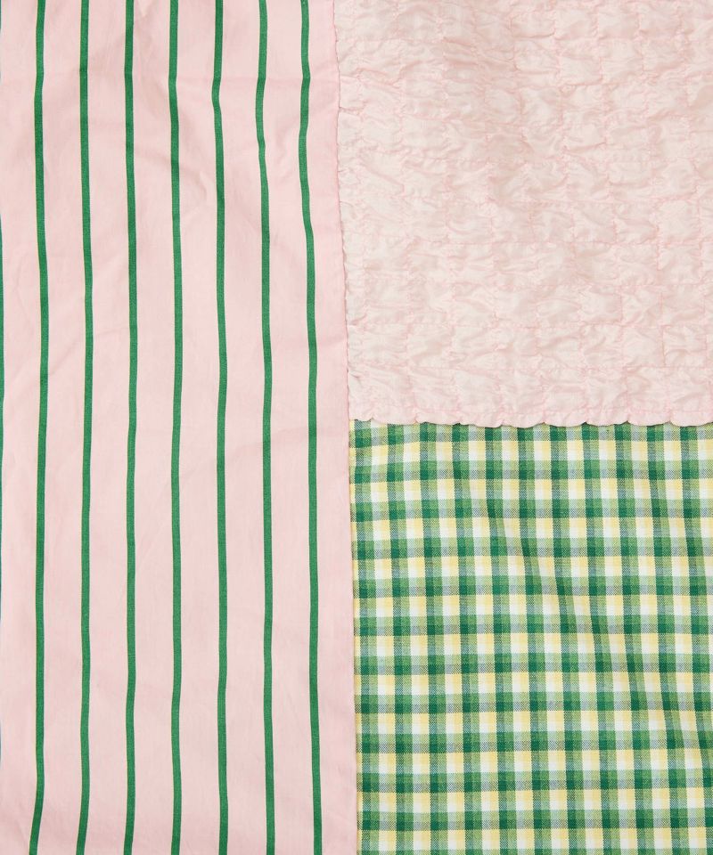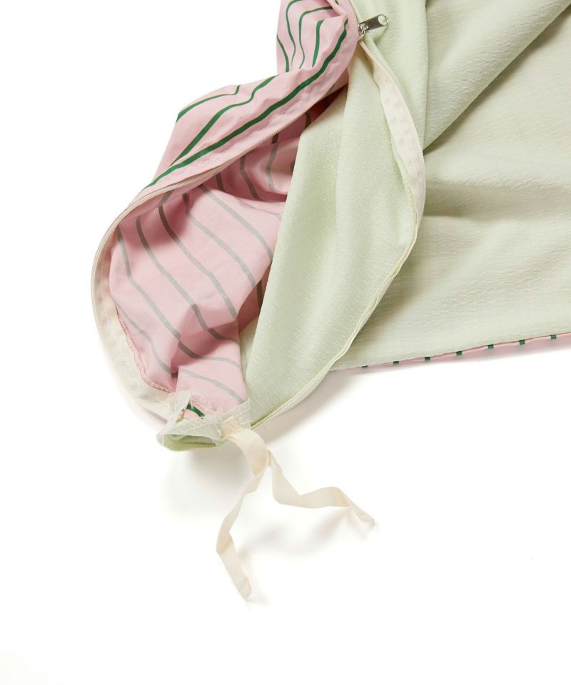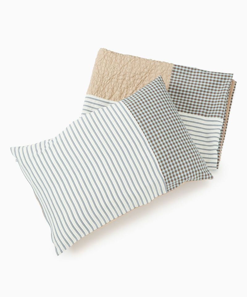 Casseliniらしい柄素材とシャーリング素材をパッチワークした布団カバー。