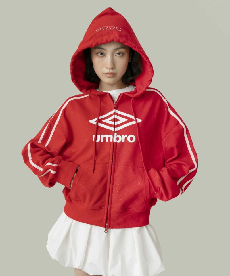 UMBROらしいスポーティーなラインをベースに、Casseliniならではの遊び心をプラスした、コラボ限定のダブルジップパーカー。