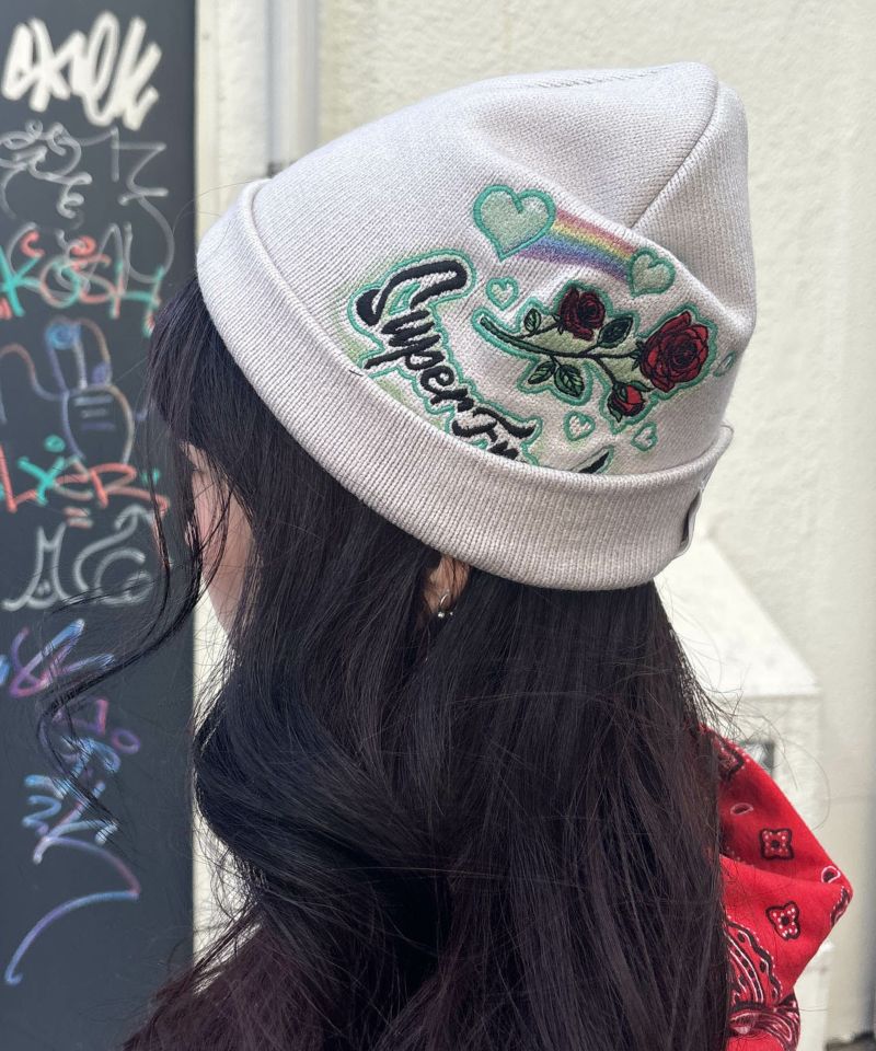 頭にバラ咲かせてどうすんの!? ってツッコみたくなるけど、かぶったら意外とハマるGALFY × HEY!MrsROSE コラボビーニー。