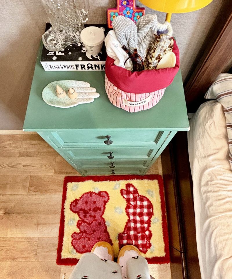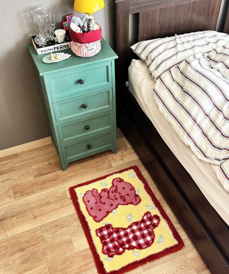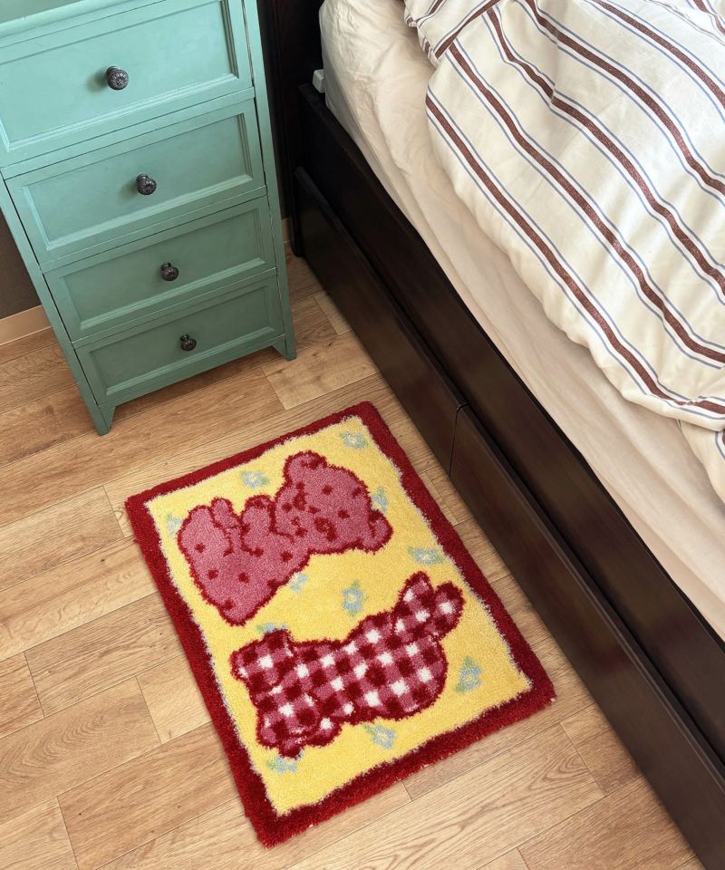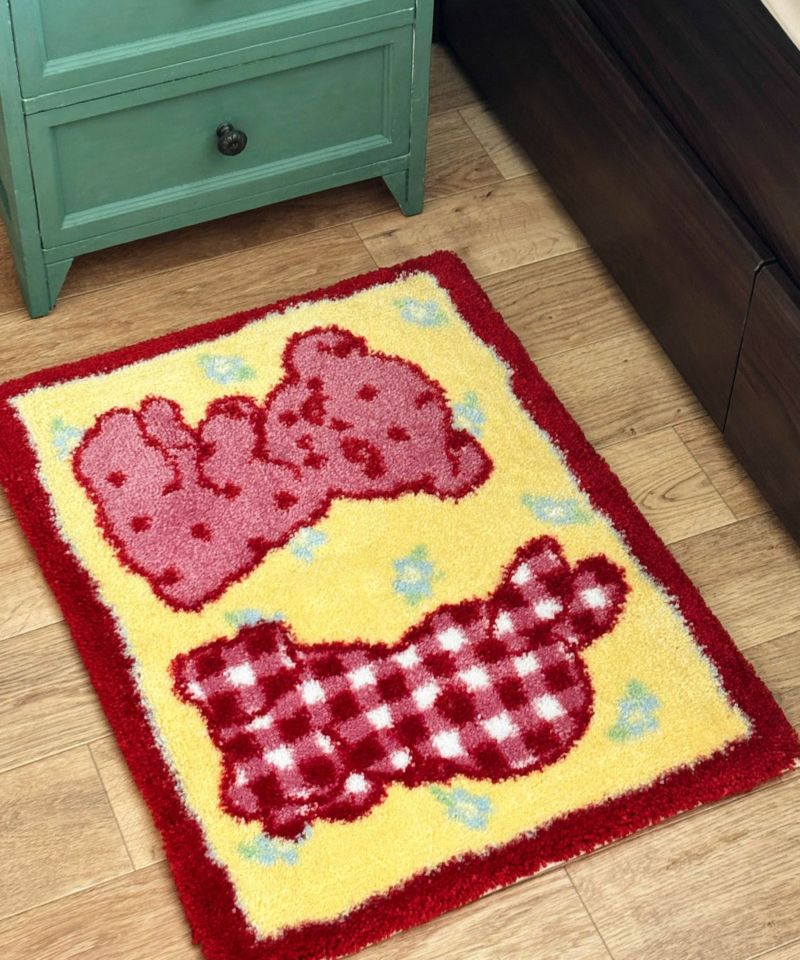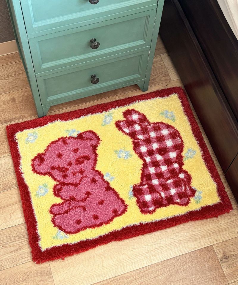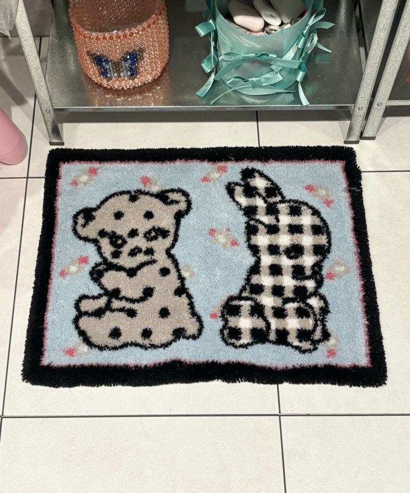 くまとうさぎのデザインがなんとも愛らしいラグ。