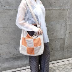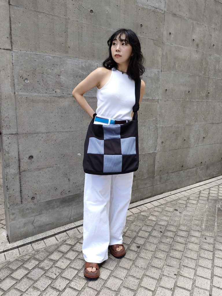 リブ素材をブロッキングに切り替えたバッグ。
