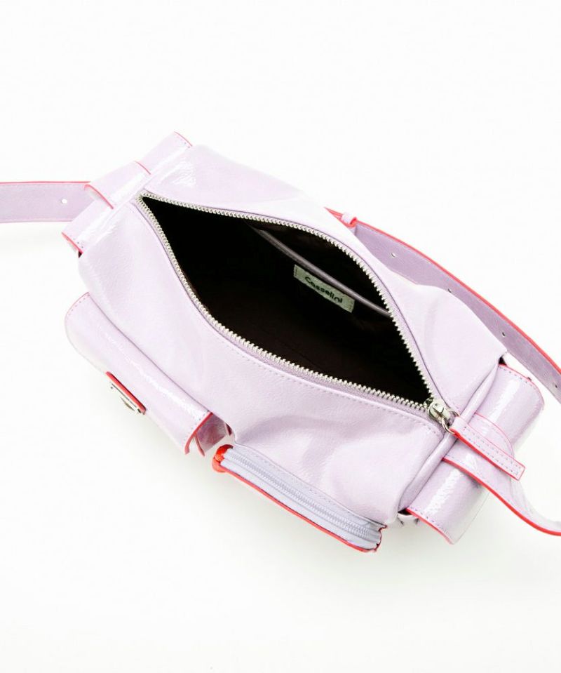 複数のポケットが可愛い、トレンド感と利便性を兼ね備えたショルダーバッグ。 シワエナメルのツヤ感、ぱっと目を惹くコバカラーと引手パーツの差し色がポイント。 ワイド幅のショルダーベルトなので、荷物を入れても負荷がかかりにくく快適にご使用いただけます。 ベルトの長さを調整して、手持ち・肩掛け・斜め掛けショルダーに変更可能。 様々なシーンやコーディネイトに合わせることができます。