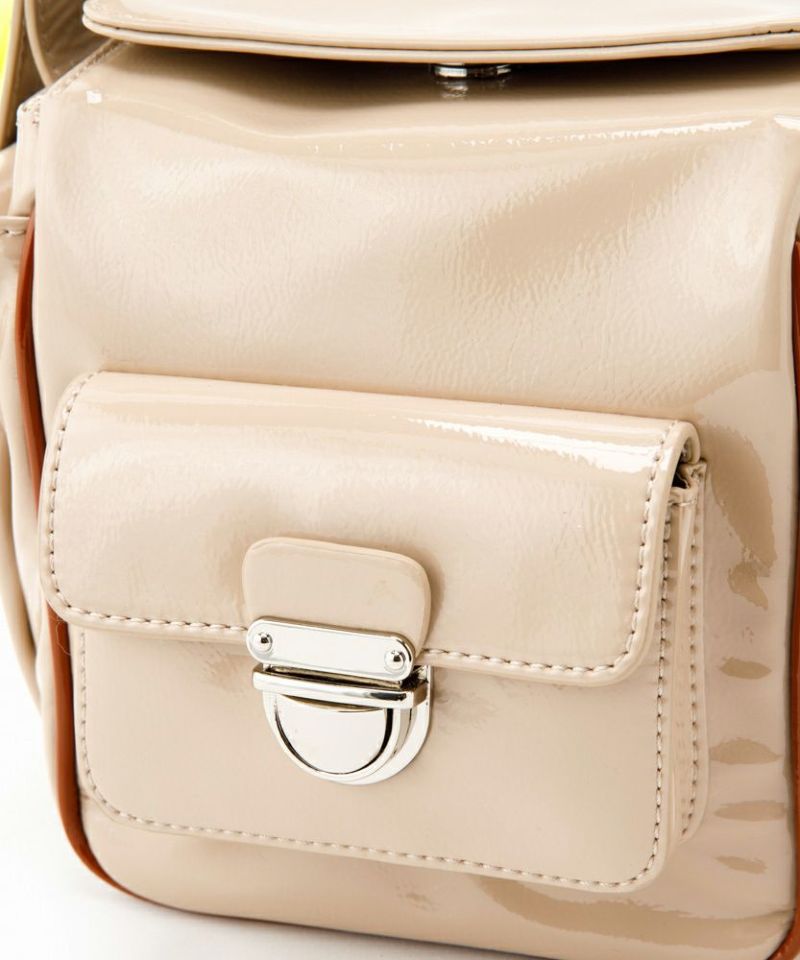 シワエナメルのツヤ感、ぱっと目を惹くコバカラーと引手パーツの差し色がポイント。