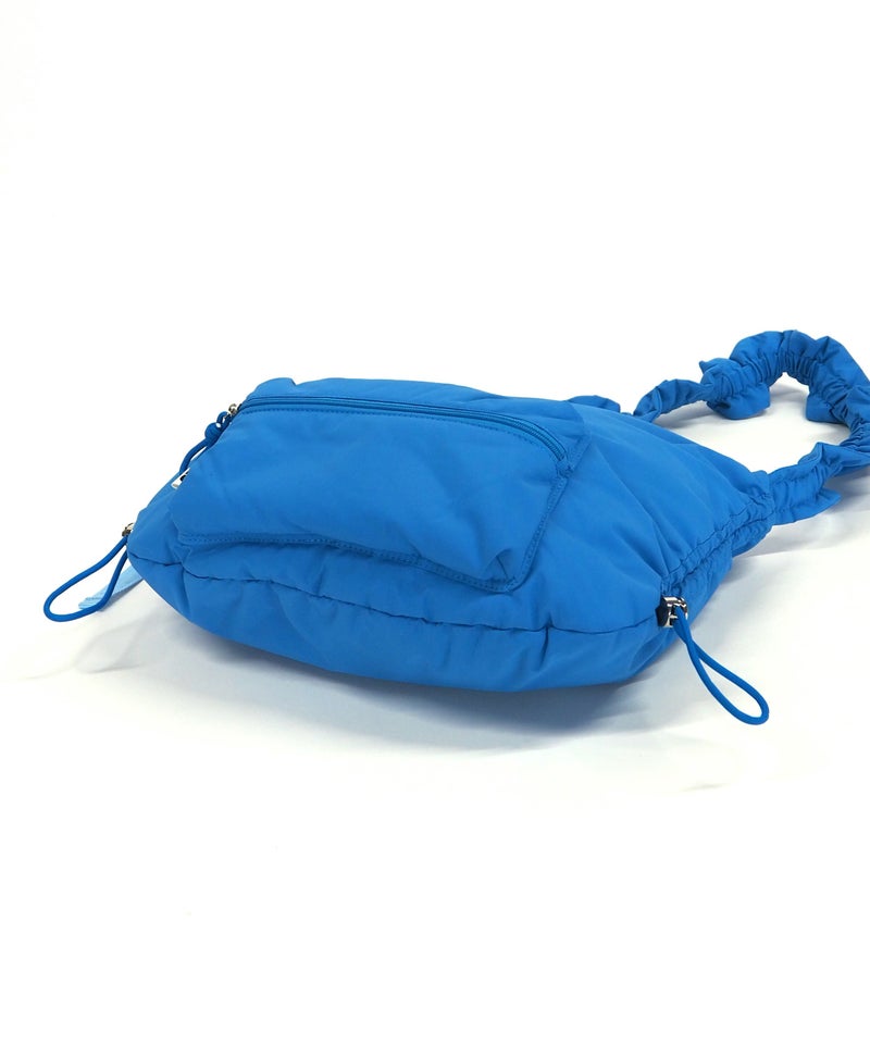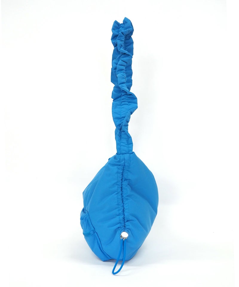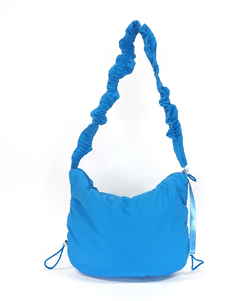 長さ調整も可能なショルダーベルトはサイドの紐を絞るとシャーリングにもなる2WAY仕様。