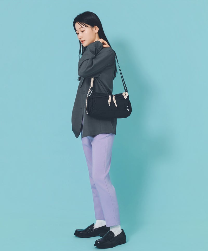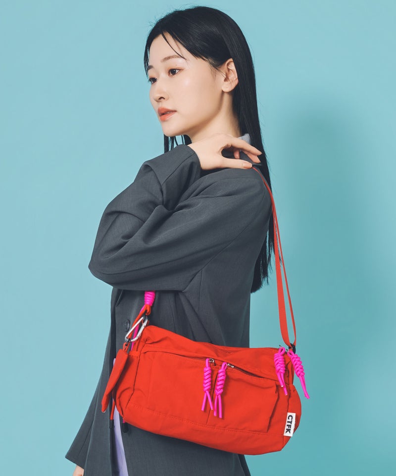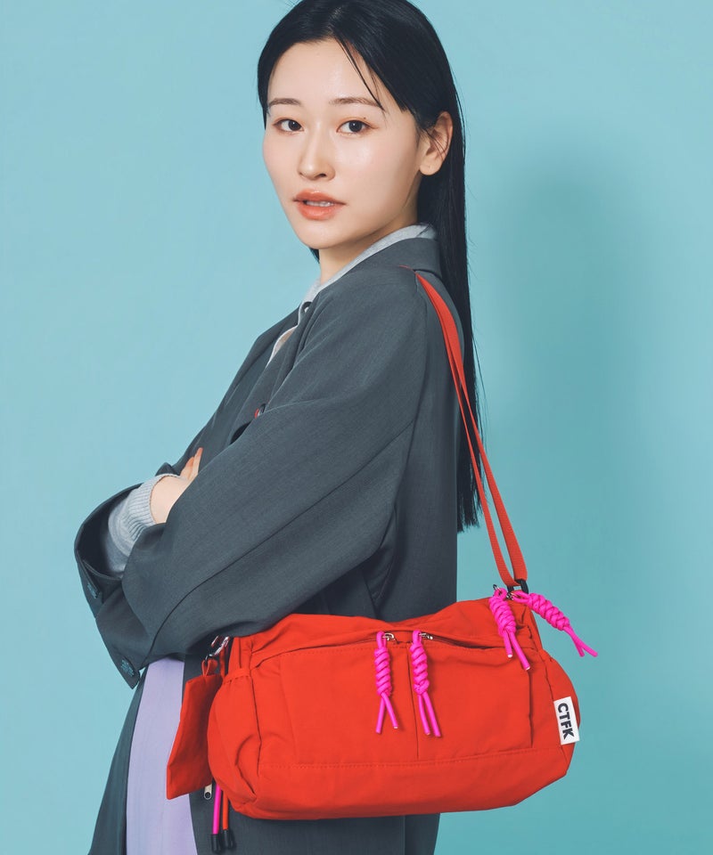 大人気の撥水ナイロンシリーズより、待望の新型が登場! ショルダーとファスナーに使用したパラコードがアクティブな印象のショルダーバッグ。 トレンドの横長シルエットが、カジュアルながら洗練さ入れた印象をプラスします。 撥水ナイロン生地を使用しているので、梅雨時期やアウトドアシーンにも活躍間違いなしの1点です。 500mlのペットボトルが横に入る嬉しいサイズ! 付属のミニポーチは取り外し可能。