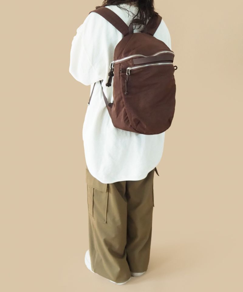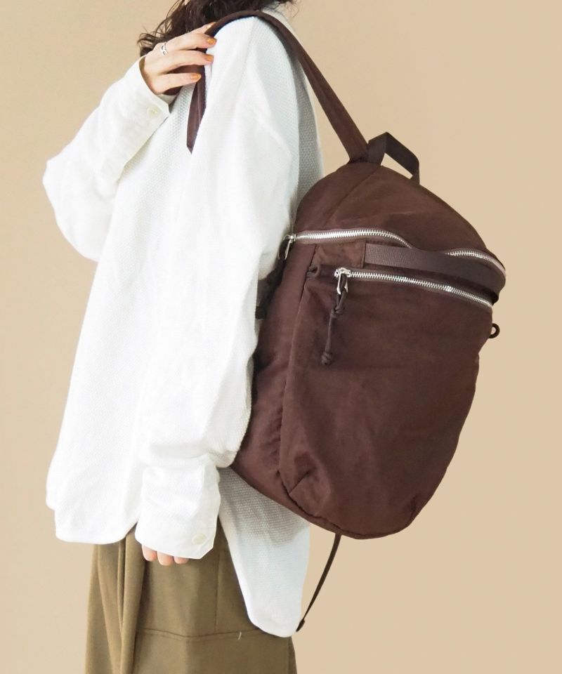 くたっとした柔らかさと、ノットディテールの引手がポイントのリュック。 ほどよいしわ感のあるテクスチャーがカジュアルながらもこなれた印象に。 軽量&A4収納可能なので、通勤通学にも活躍します。