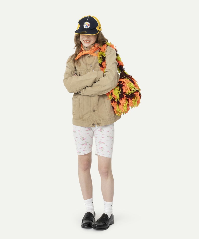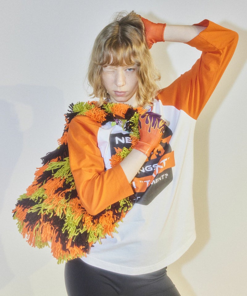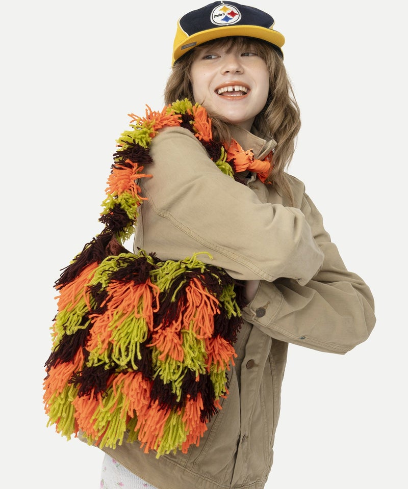 アクリル毛糸を選んでフリンジテープを作り、それを全面に施したBAGを作ってもらいました。