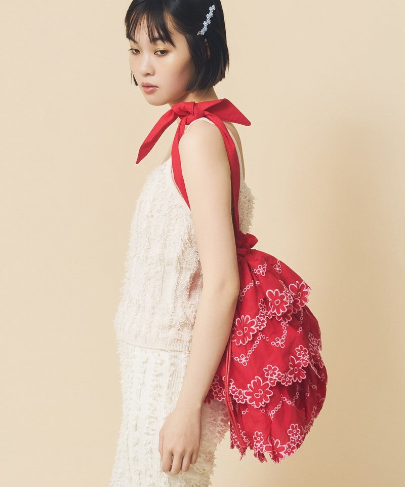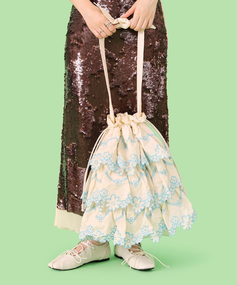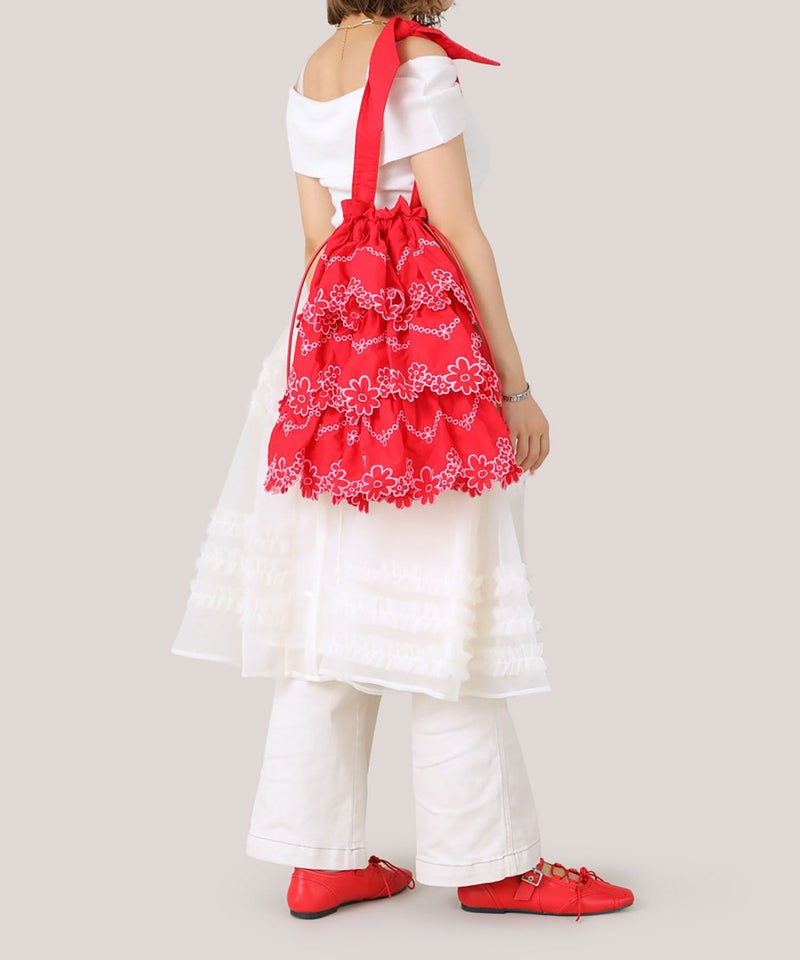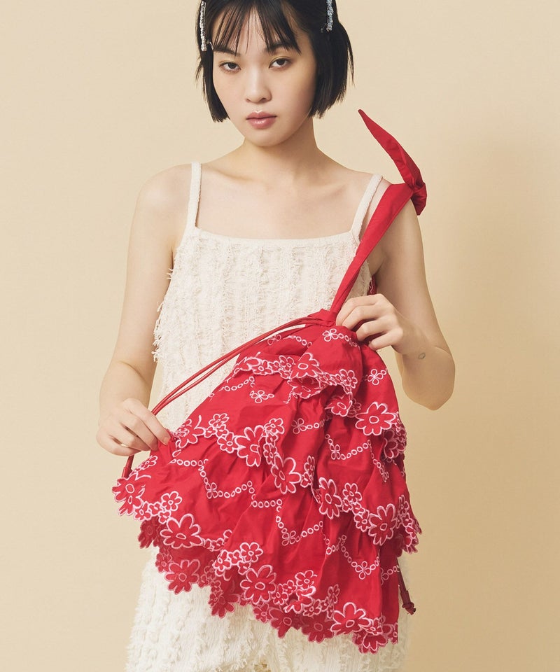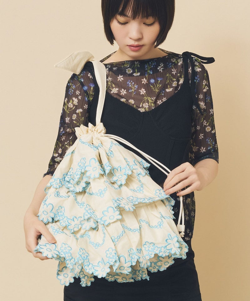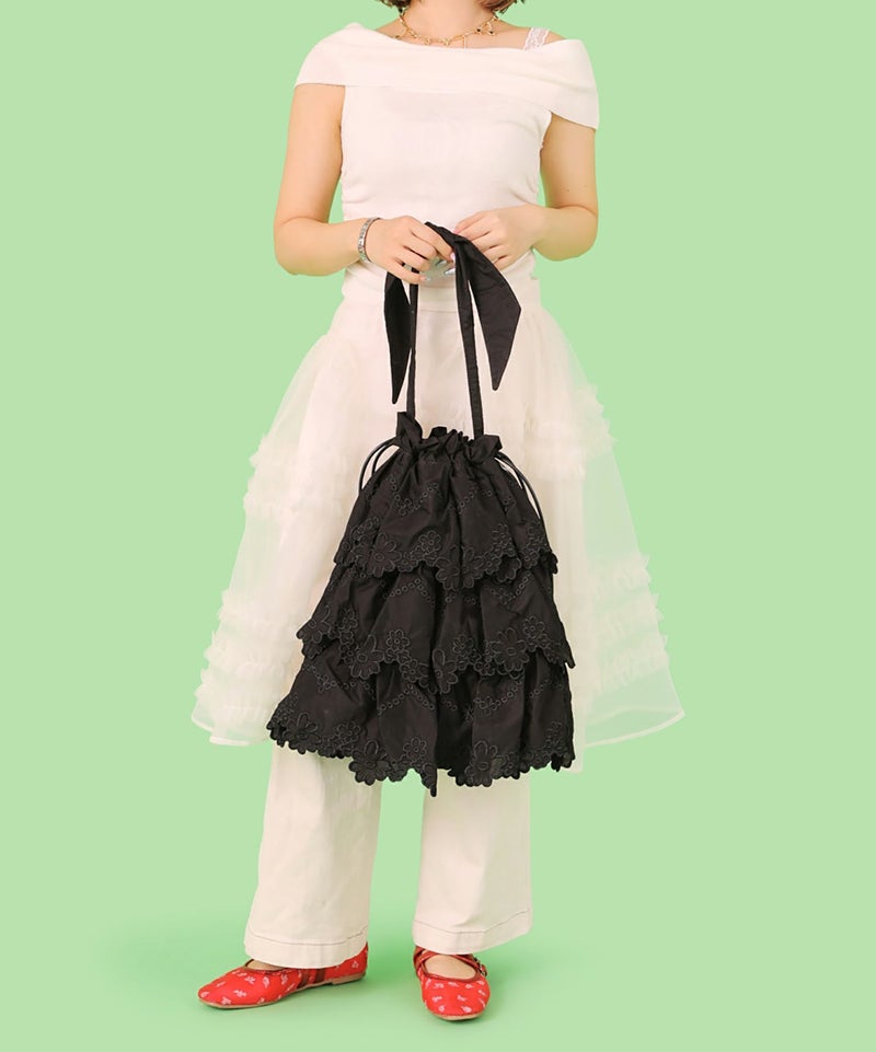 巾着の部分は絞ると、レースのボリュームがより強調され、華やかな印象に。