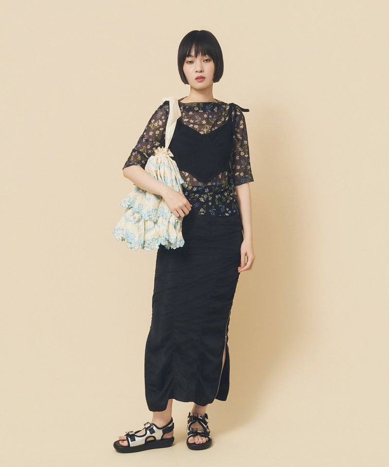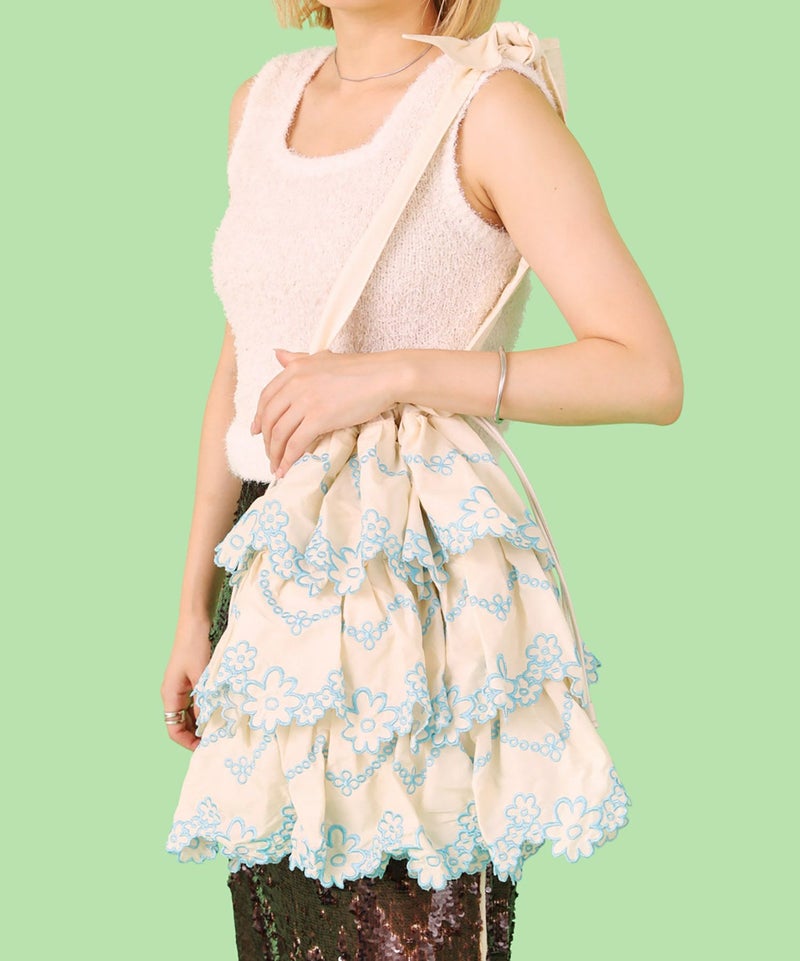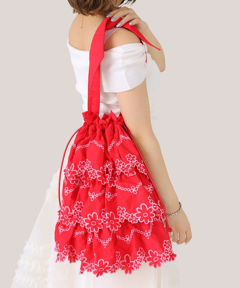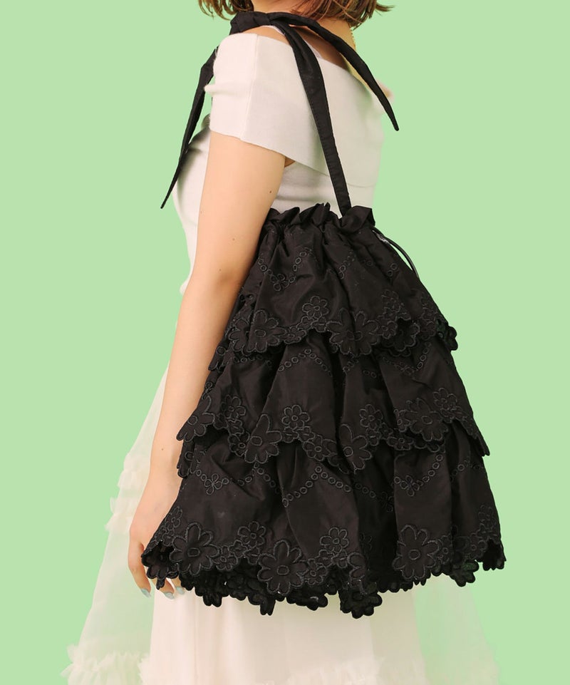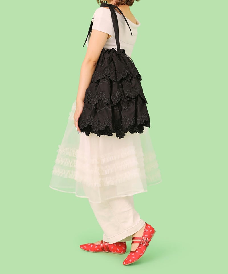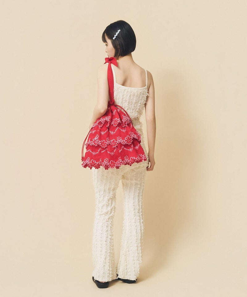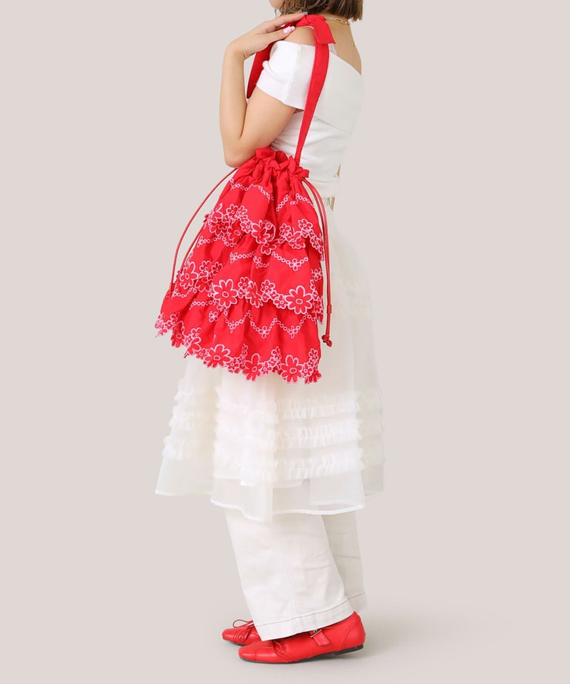 巾着の部分は絞ると、レースのボリュームがより強調され、華やかな印象に。