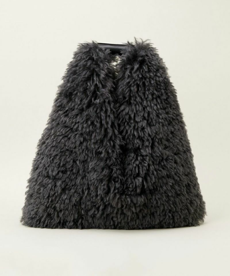 とにかく肌触りがいいフェイクファーを使用したビッグバッグ。チャコールに近い柔らかなブラックカラーで、アウターと合わせても重たい印象になりすぎません。シーズンムードを演出しながらも、A4サイズが収納できる実用性を兼ね備えているのも嬉しいポイントです。