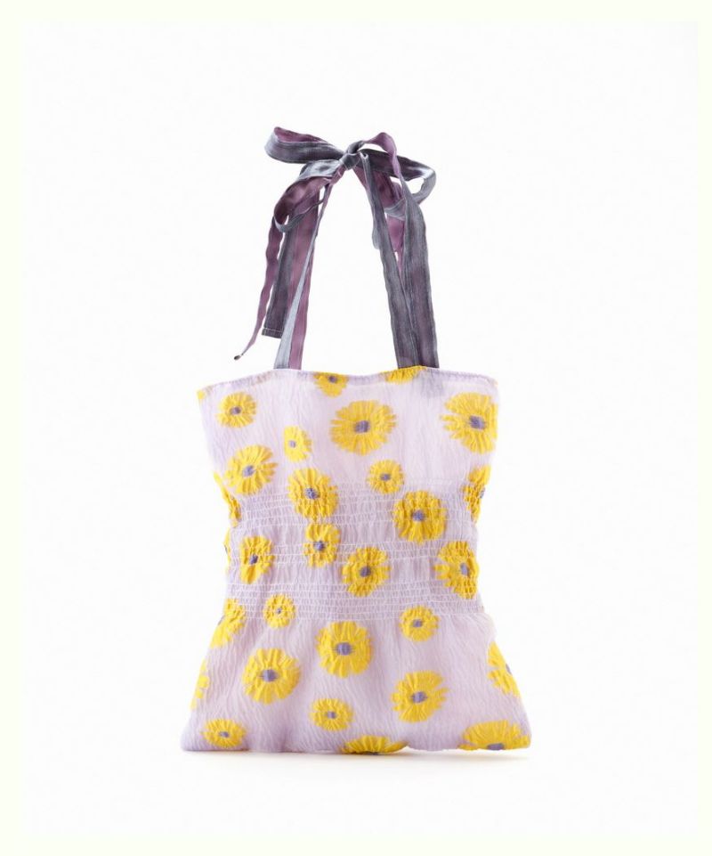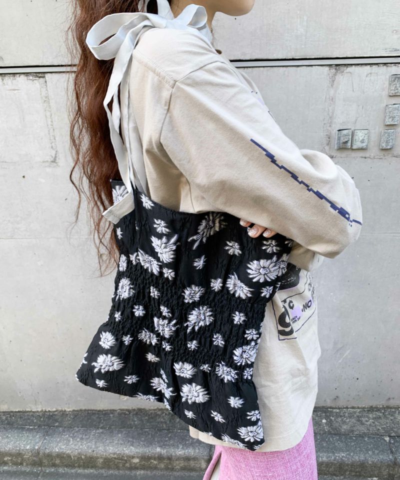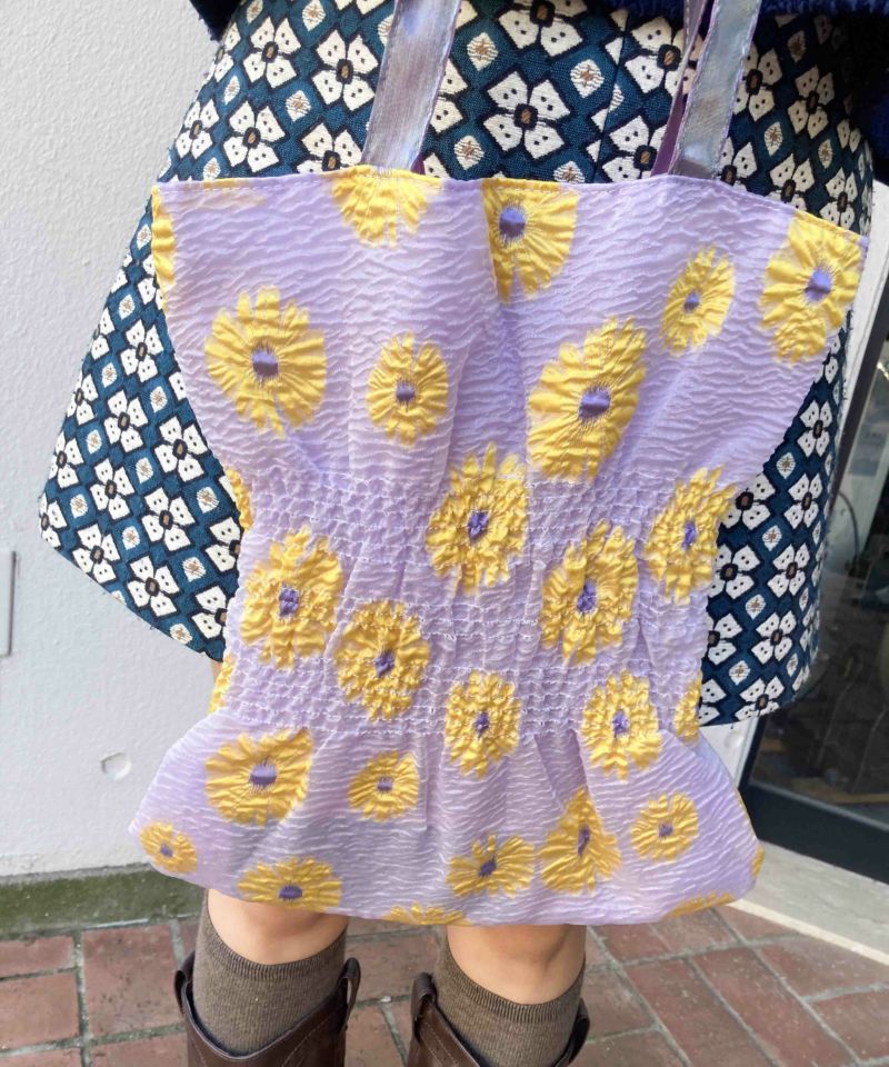 透け感のジャガード生地に立体的な模様が目を惹くトートバッグ。