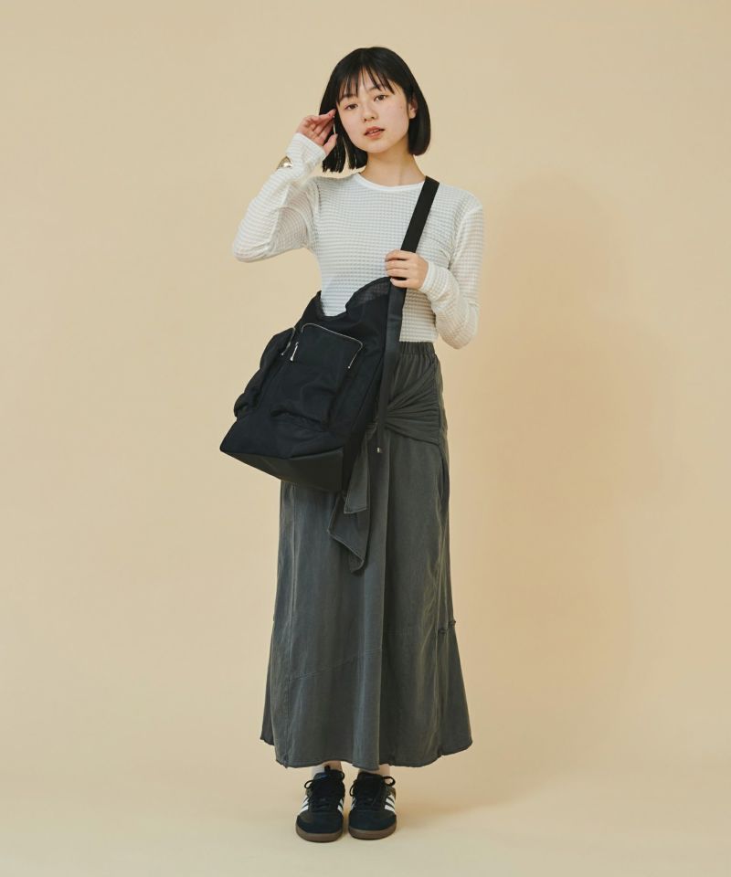 フロントのダブルポケットが今っぽい表情で、トレンド感も◎