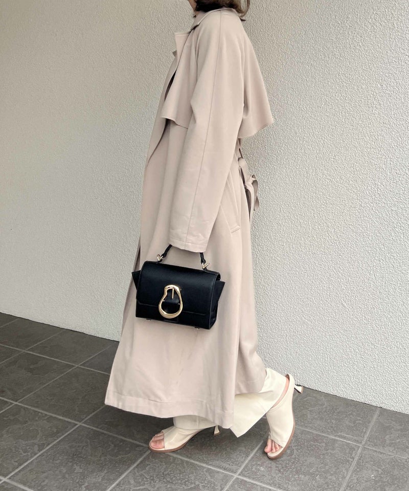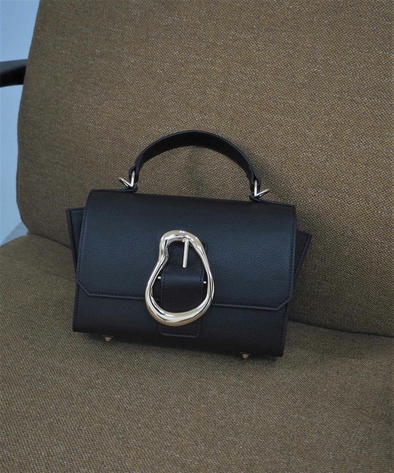 <POIRE -ポワール-> 洋梨(POIRE)を模したフロントのオリジナルバックルがポイントのアイテム。 ミニマムでシックな佇まいが魅力。 大きめのマチと柔らかい素材を採用したことで、口元の開閉がしやすく、実用性も兼ね備えています。 ショルダーベルト付きで、シーンに合わせてお使いいただける2WAY仕様。 きれいめスタイルにも大人カジュアルスタイルにも、様々なコーディネートのアクセントになってくれます。