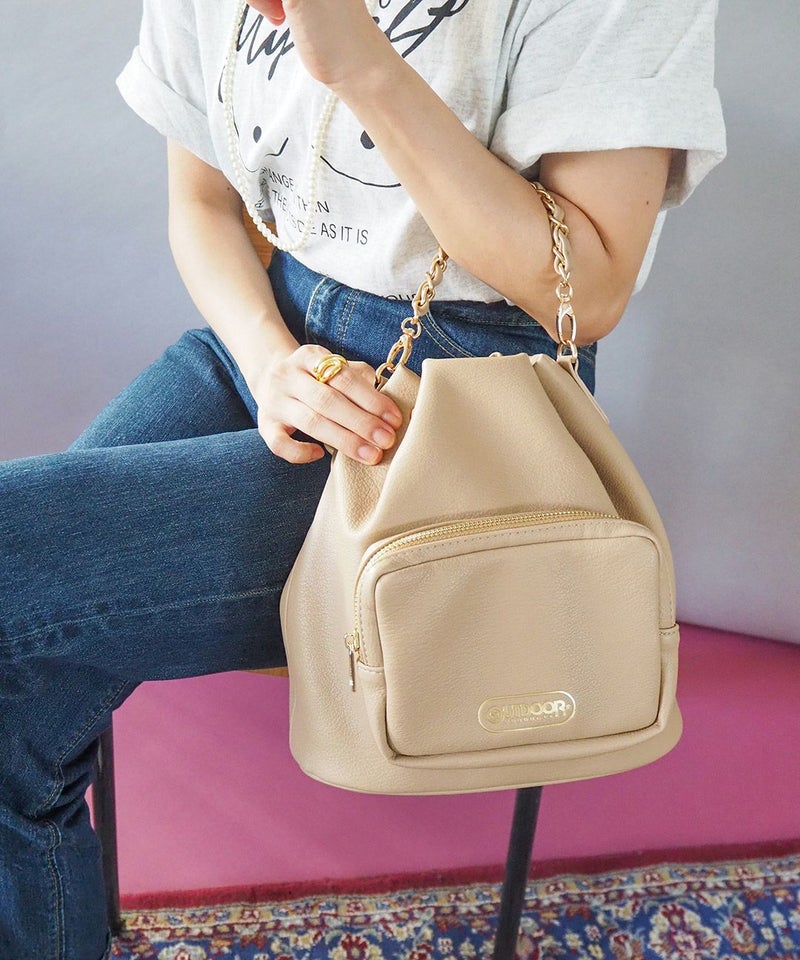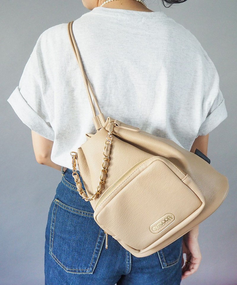 華奢で長めにとった紐は、リュックとしてはもちろん、2本をまとめて片方の肩にかけて持つとさらに抜け感のあるバランスになりおすすめです。
