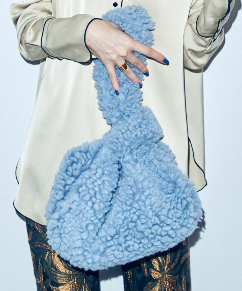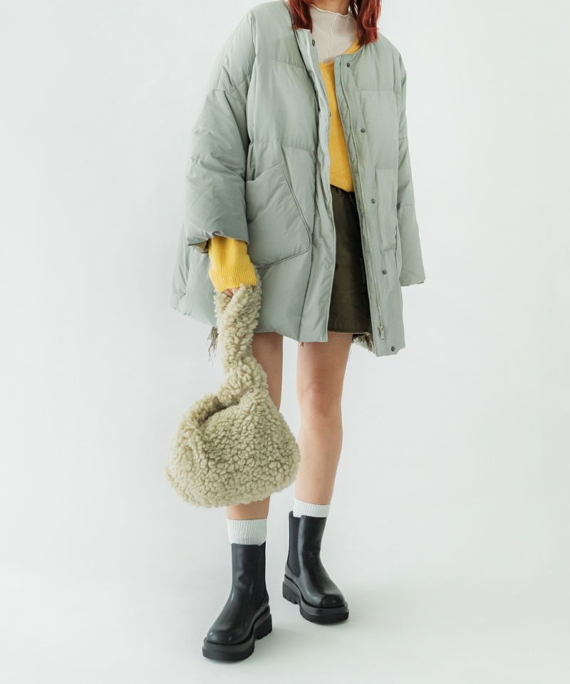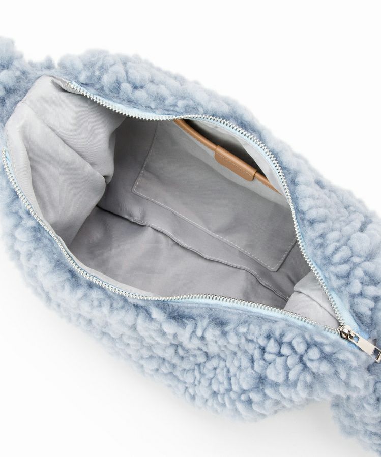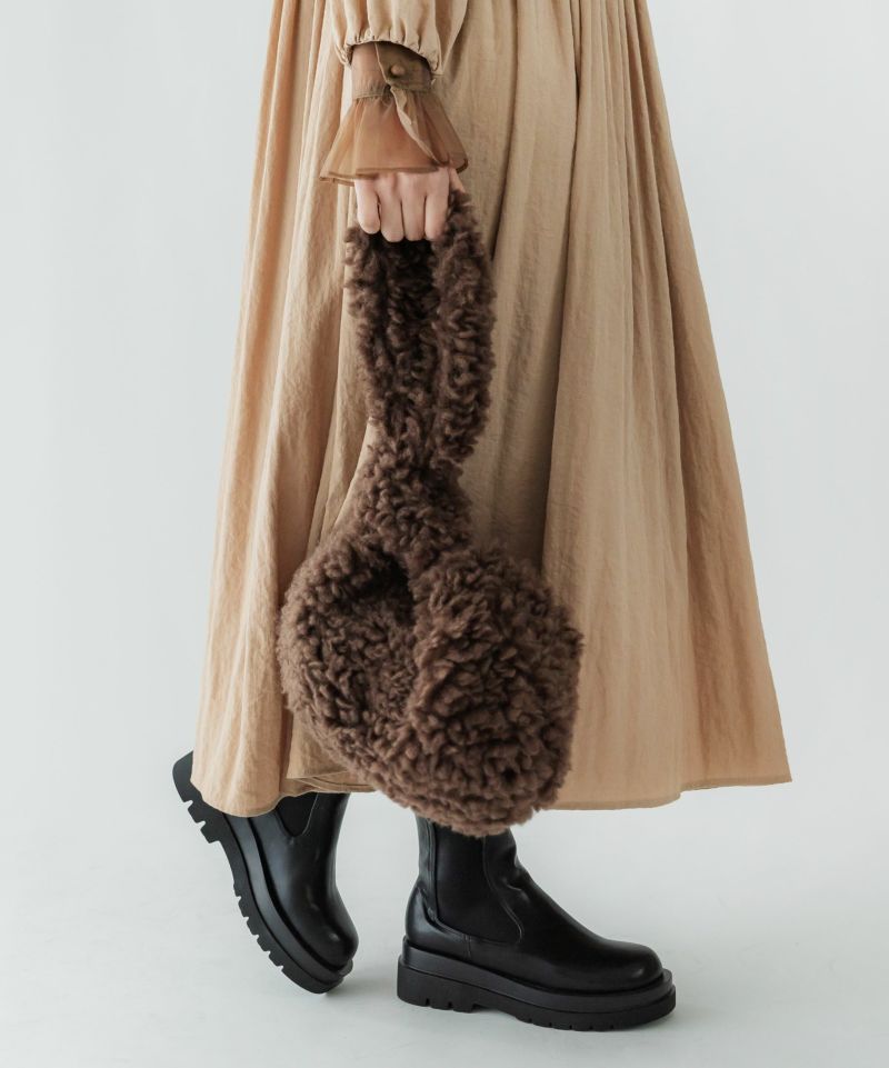 ボリュームのあるボア素材を使用したワンハンドルバッグ。