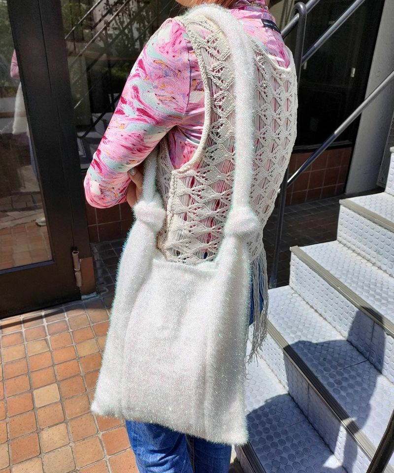 キラキラ素材を使用しているニットトートバッグが登場です。