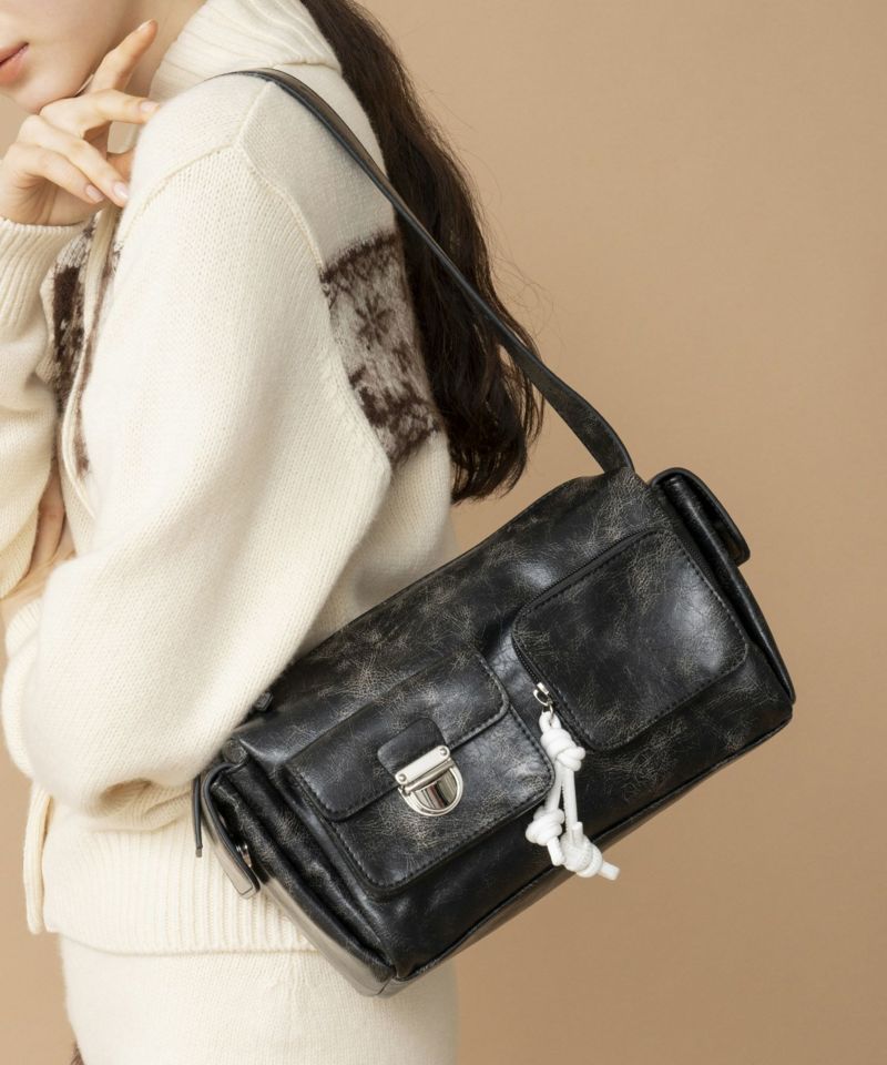 複数のポケットが可愛い、トレンド感と利便性を兼ね備えたショルダーバッグ。 シワエナメルのツヤ感、ぱっと目を惹くコバカラーと引手パーツの差し色がポイント。 ワイド幅のショルダーベルトなので、荷物を入れても負荷がかかりにくく快適にご使用いただけます。 ベルトの長さを調整して、手持ち・肩掛け・斜め掛けショルダーに変更可能。 様々なシーンやコーディネイトに合わせることができます。